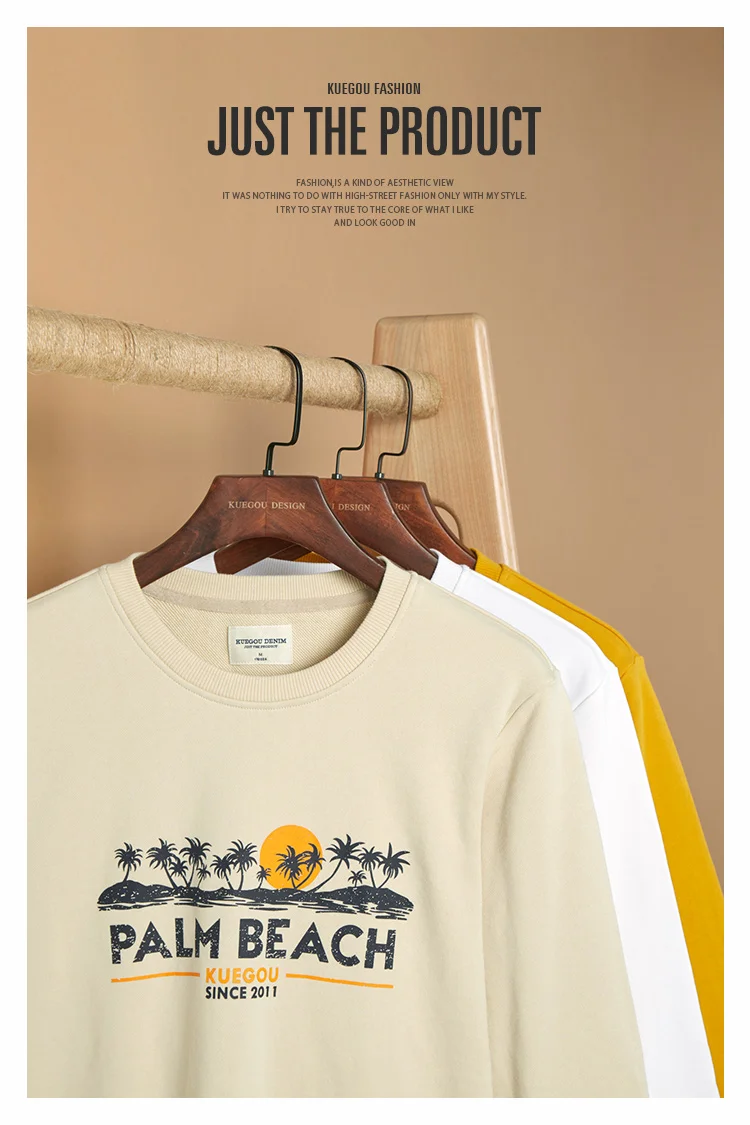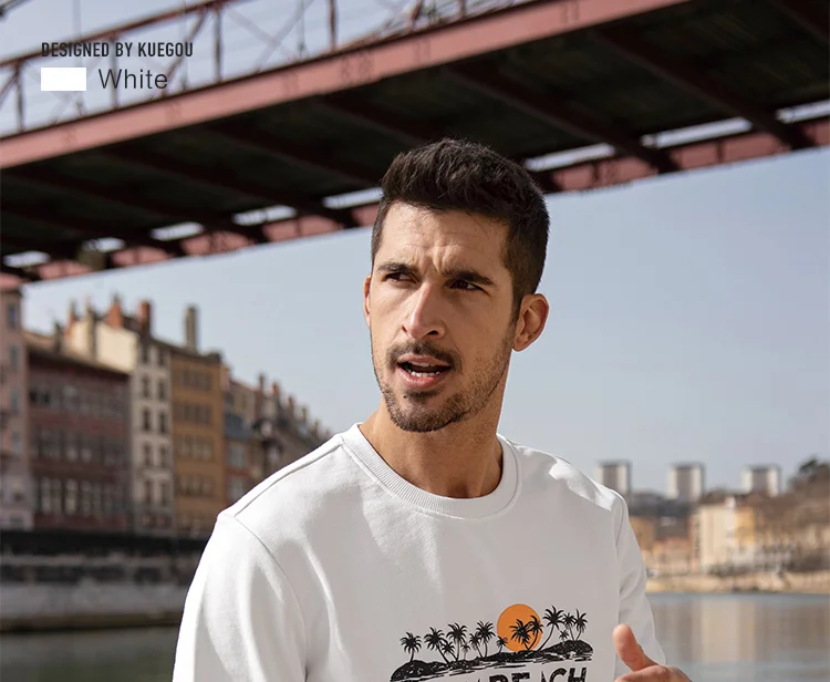 KUEGOU осенние толстовки, модная одежда, мужские свитшоты, джоггеры...