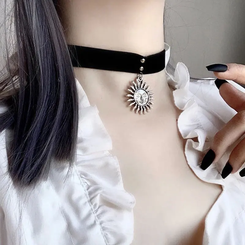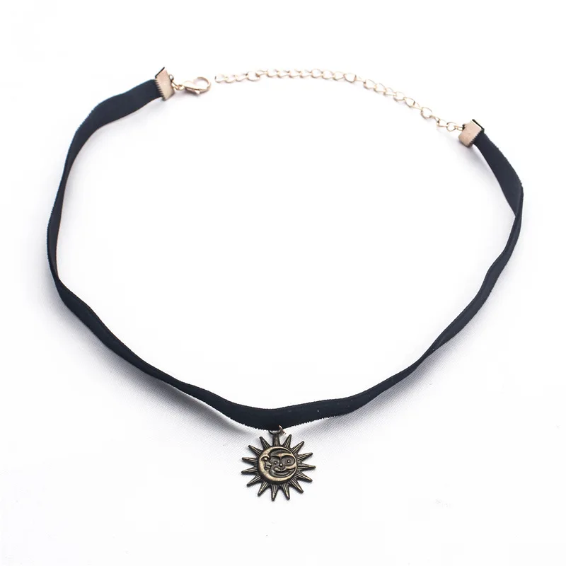 Женское Ожерелье-чокер из ПУ кожи, черное ожерелье в стиле панк, готика, полумесяц, крест, шипы, заклепки, украшение на шею