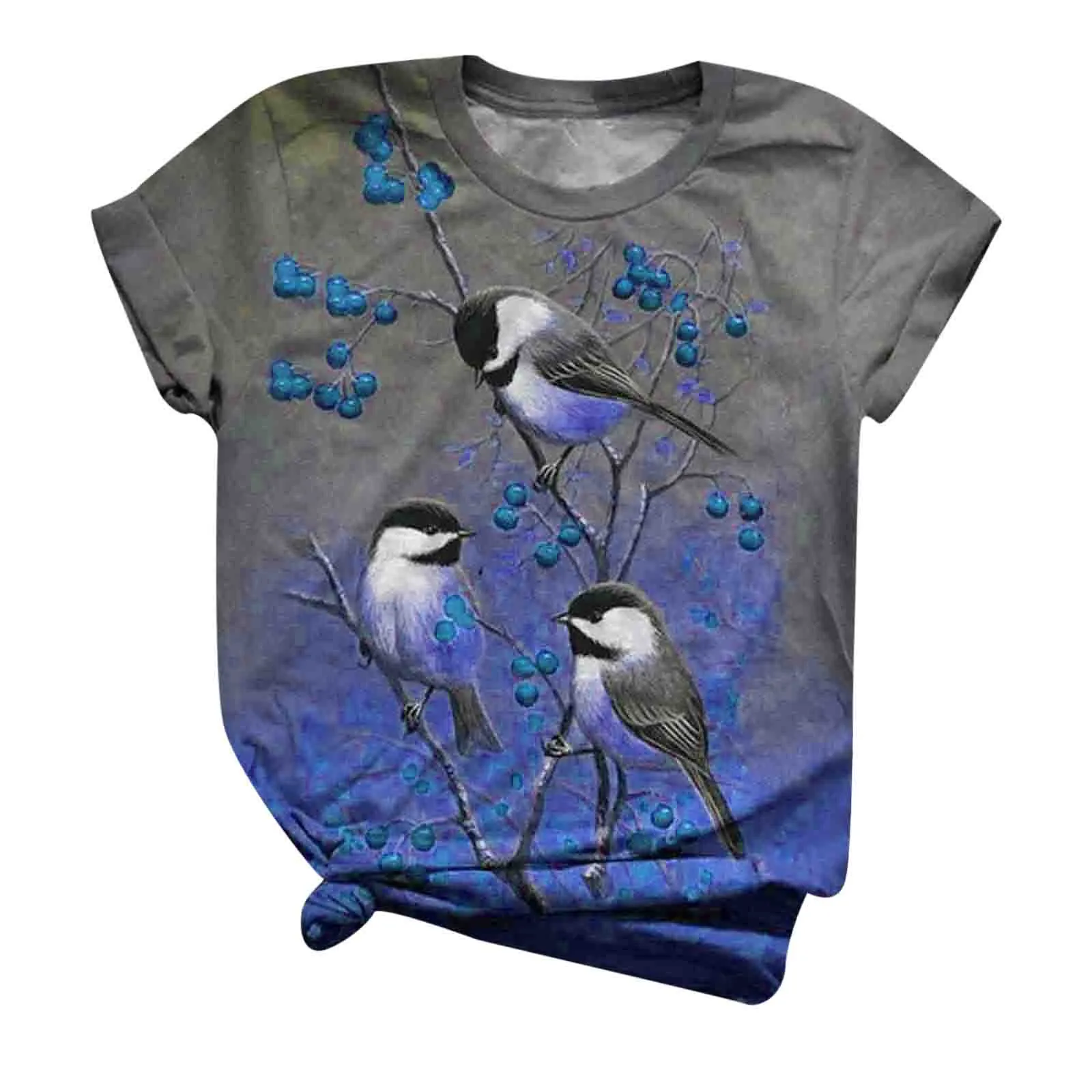 Хит продаж 2021, дешевая Женская одежда, одежда для девочек, женские футболки в стиле Харадзюку, топы с коротким рукавом и принтом птиц, женская футболка