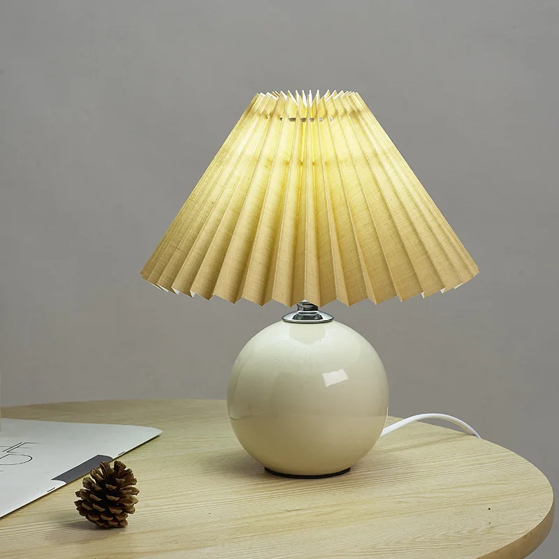 Скандинавская Керамическая Настольная лампа кремового цвета, плисси...
