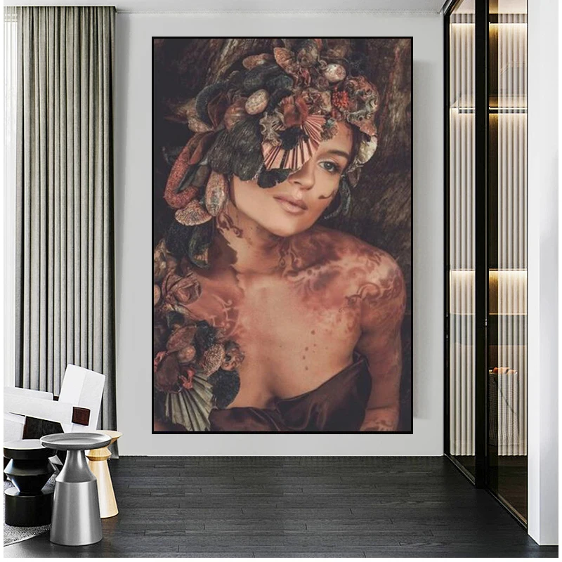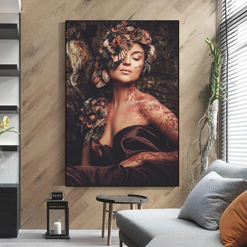 Художественные плакаты на холсте цветы над головой, современные жен...