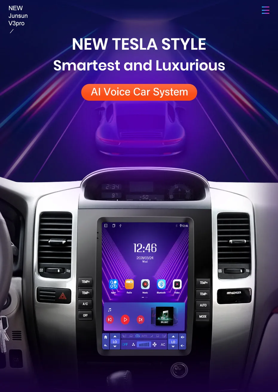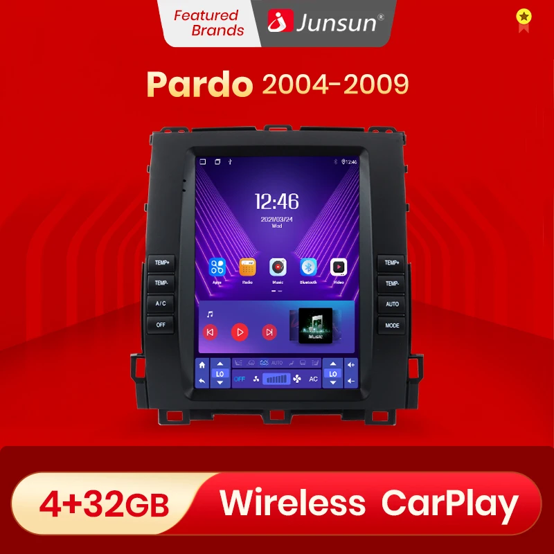 Junsun для Tesla Style Android Auto 4G беспроводной Carplay DSP Магнитола Автомагнитола Мультимедиа автомобиля для Toyota Land Cruiser Prado 120 2004-2009 нет 2 DIN Аудио для авто Автомагнитолы
