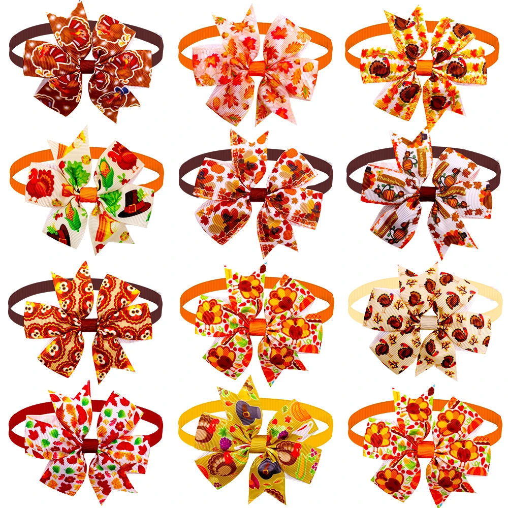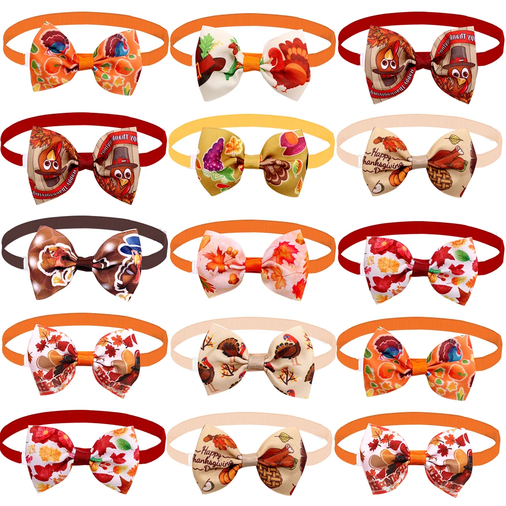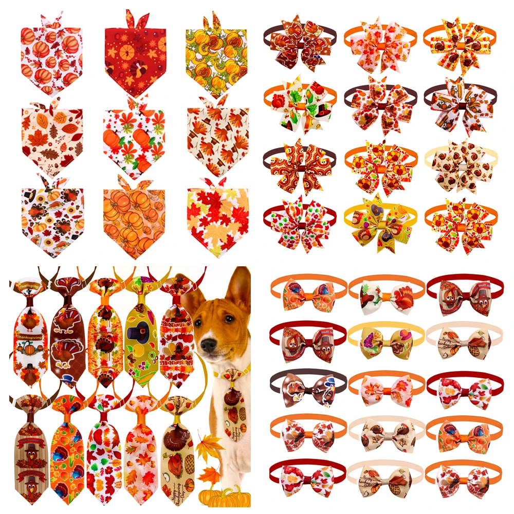 Товар: 50 шт., Осенние товары для животных, бандана для собак, галстук-бабочка для кота, аксессуары для собак на День Благодарения, тыква, индейка, галстуки-бабочки для собак