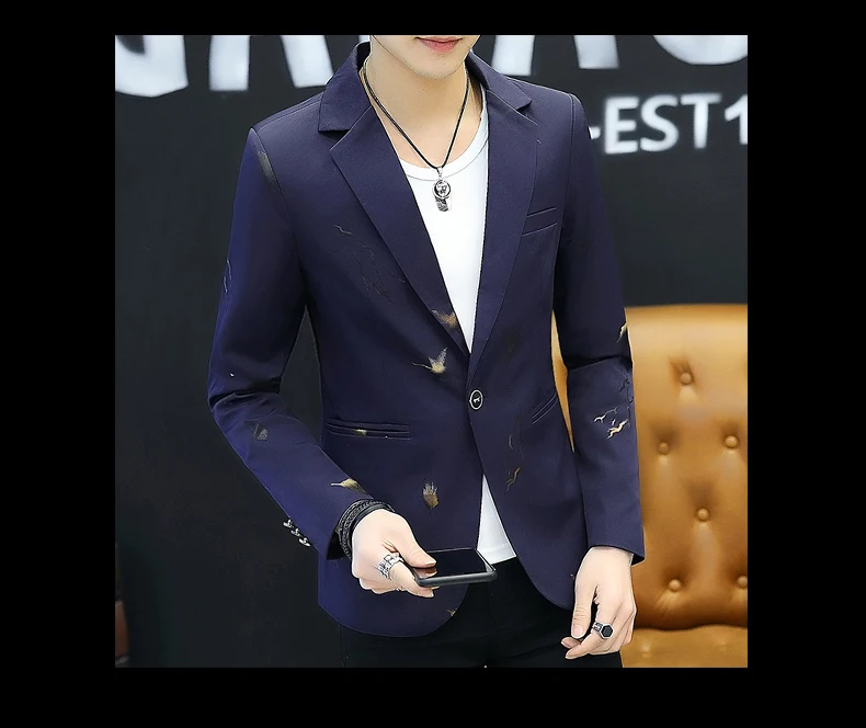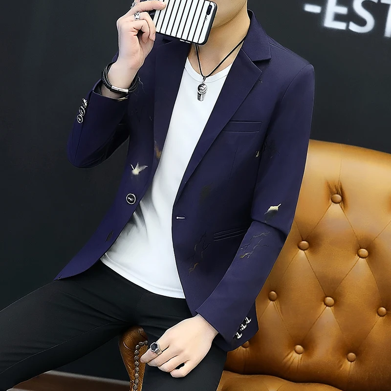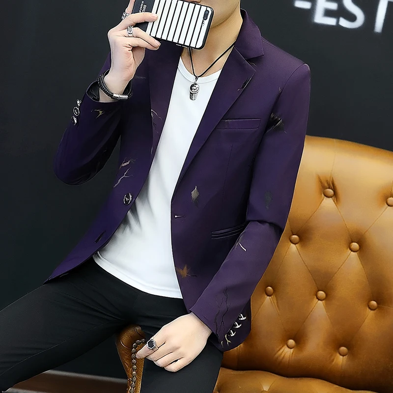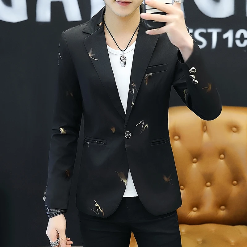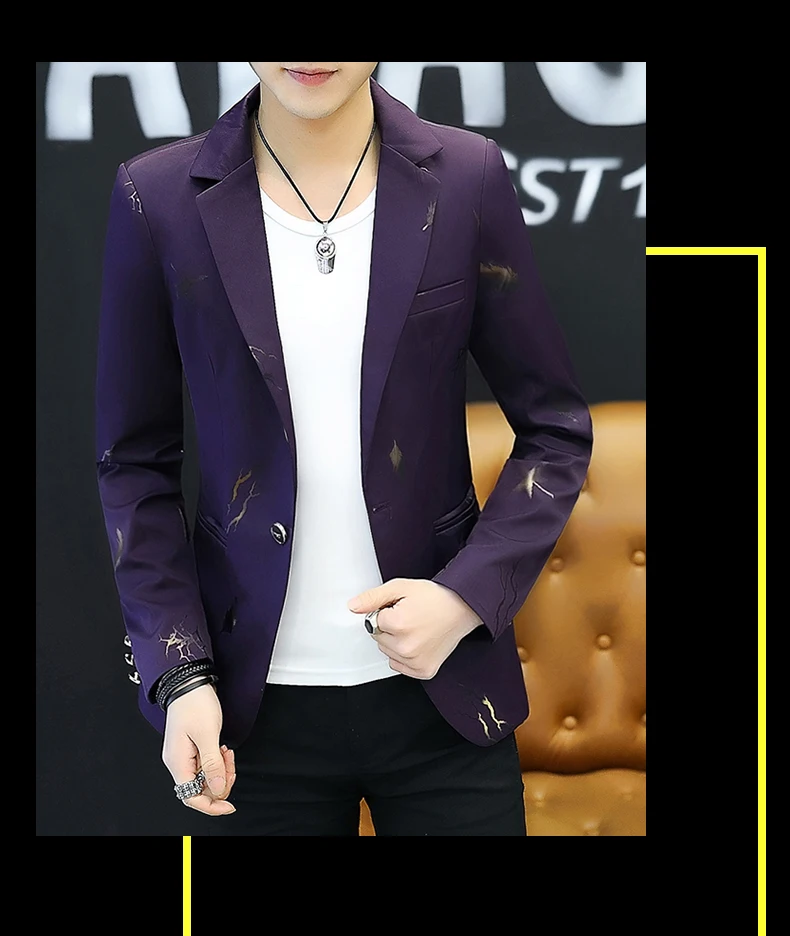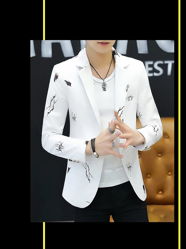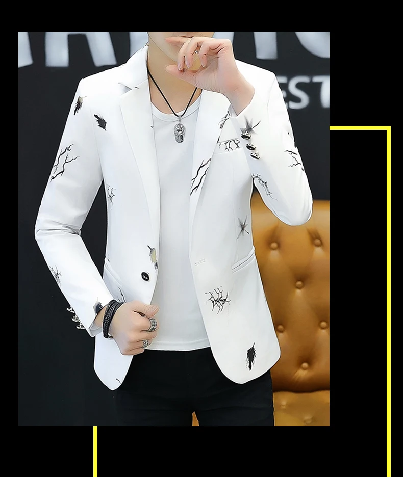 Стильный пиджак с принтом, мужской облегающий Блейзер, модель 2021, для свадьбы, для ночного клуба, сценическая куртка с одной кнопкой для мужчин, XXXL