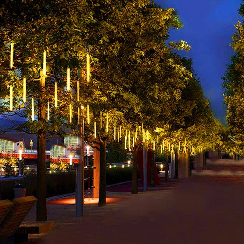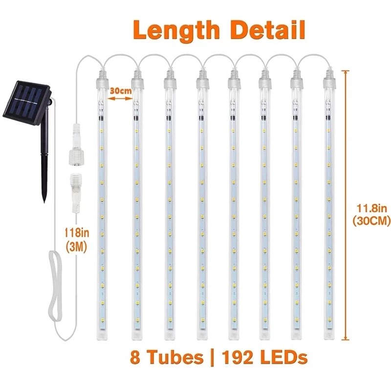 Солнечный метеоритный дождь на открытом воздухе 30 см 8 трубок 192 светодиодный падающий дождь сказочные гирлянды для дерева праздничный порог, двор патио на крыше вечерние рождественские украшения