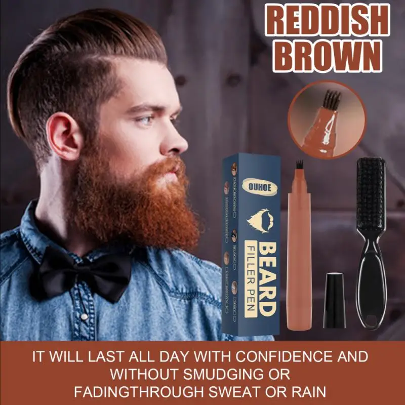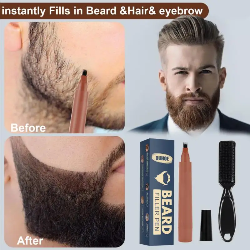 Мужская водонепроницаемая ручка с четырьмя зубцами и щетка для бороды, наполнитель, карандаш, комбинированный усилитель покрытия, длительное восстановление формы усов