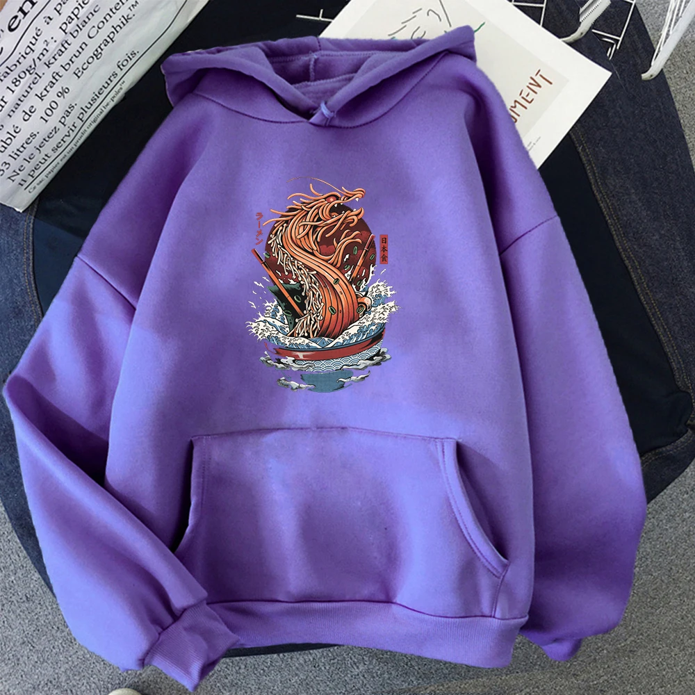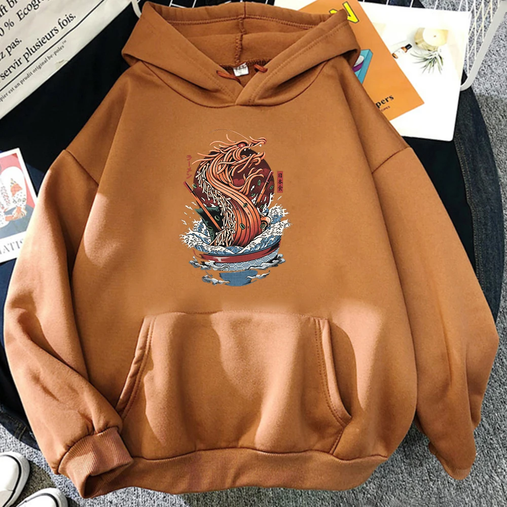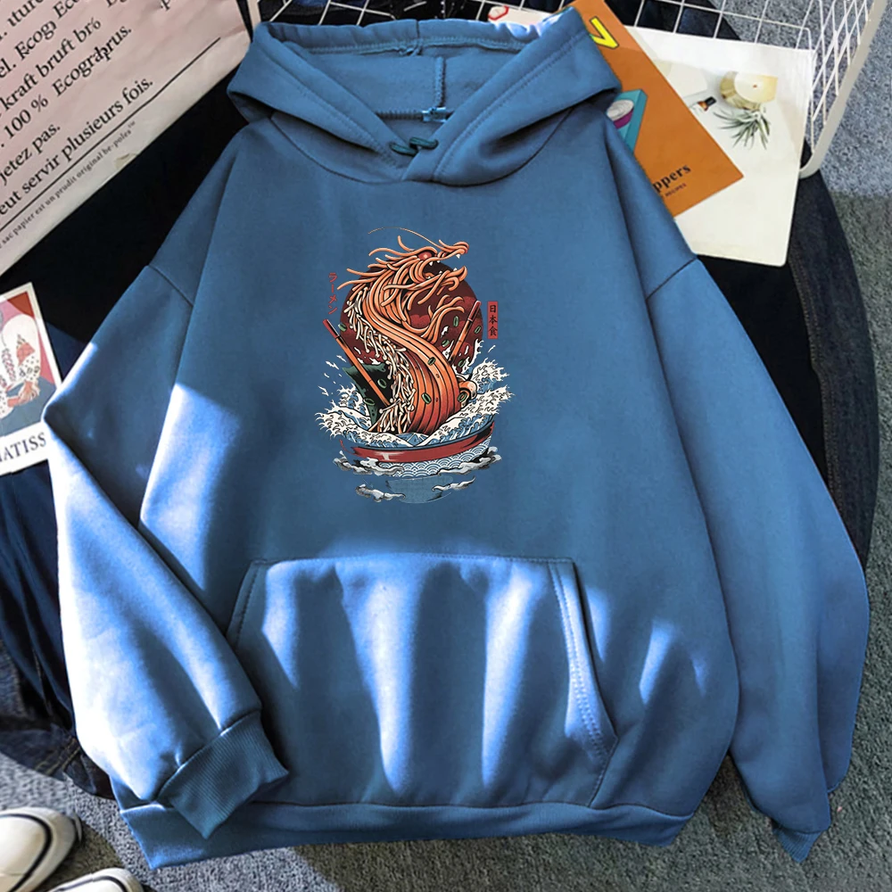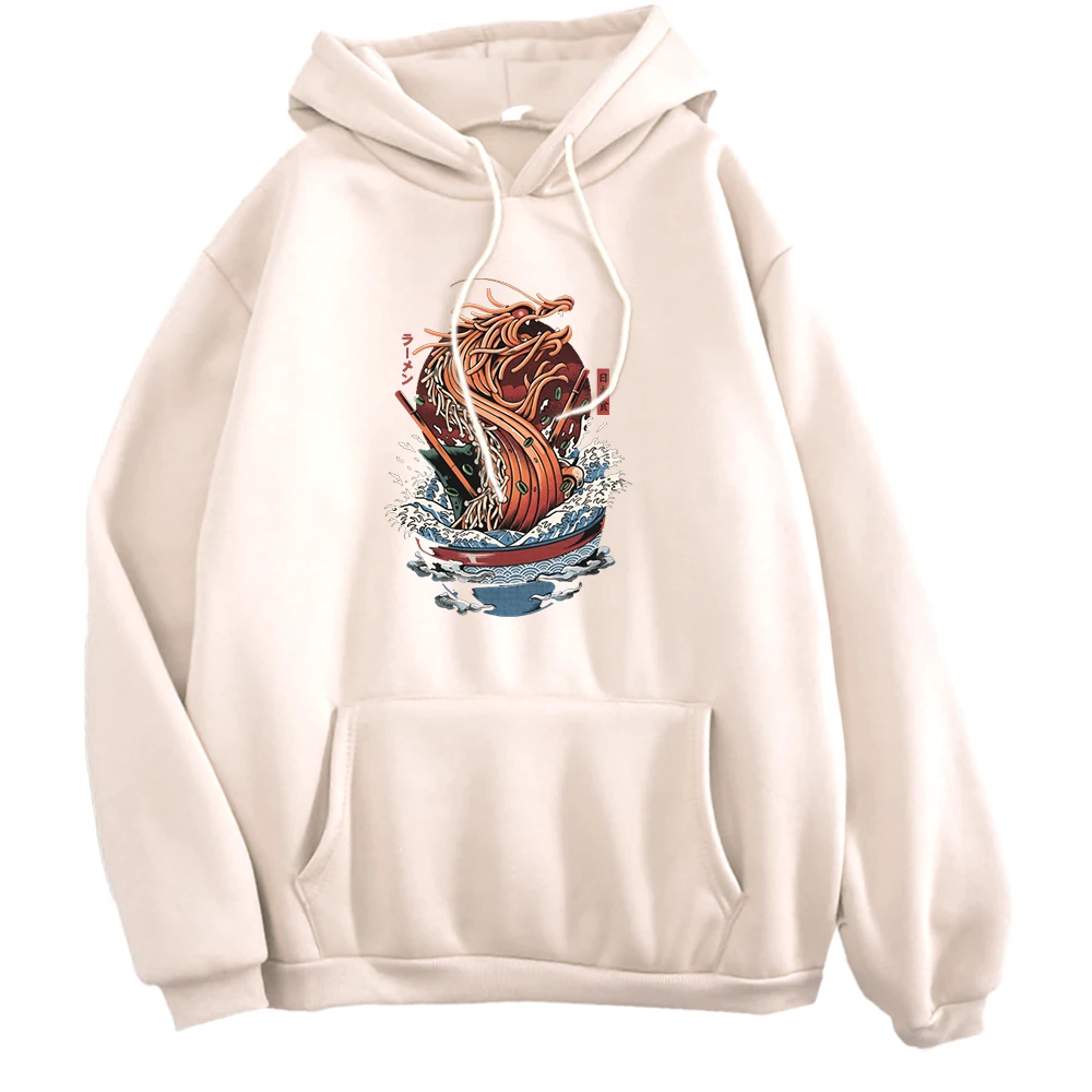 Толстовка с японским драконом и рамен, мужская повседневная Корейская теплая толстовка, свободная уличная одежда в стиле Харадзюку, модная мужская Толстовка