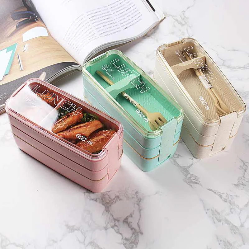 900 мл 3-слойный бэнто-бокс, экологически чистый Ланч-бокс для микр...