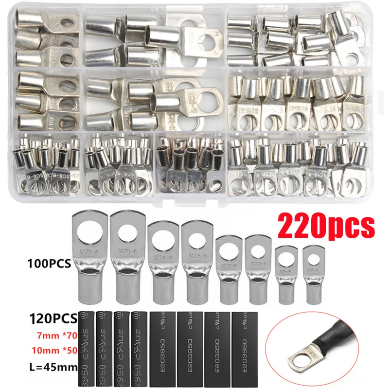 140220 шт. SC оголенные Луженые Медные кольцевые наконечники, клеммы для электрического кабеля, клеммы для аккумулятора, носа, припой, обжимной провод, соединительная трубка в комплекте
