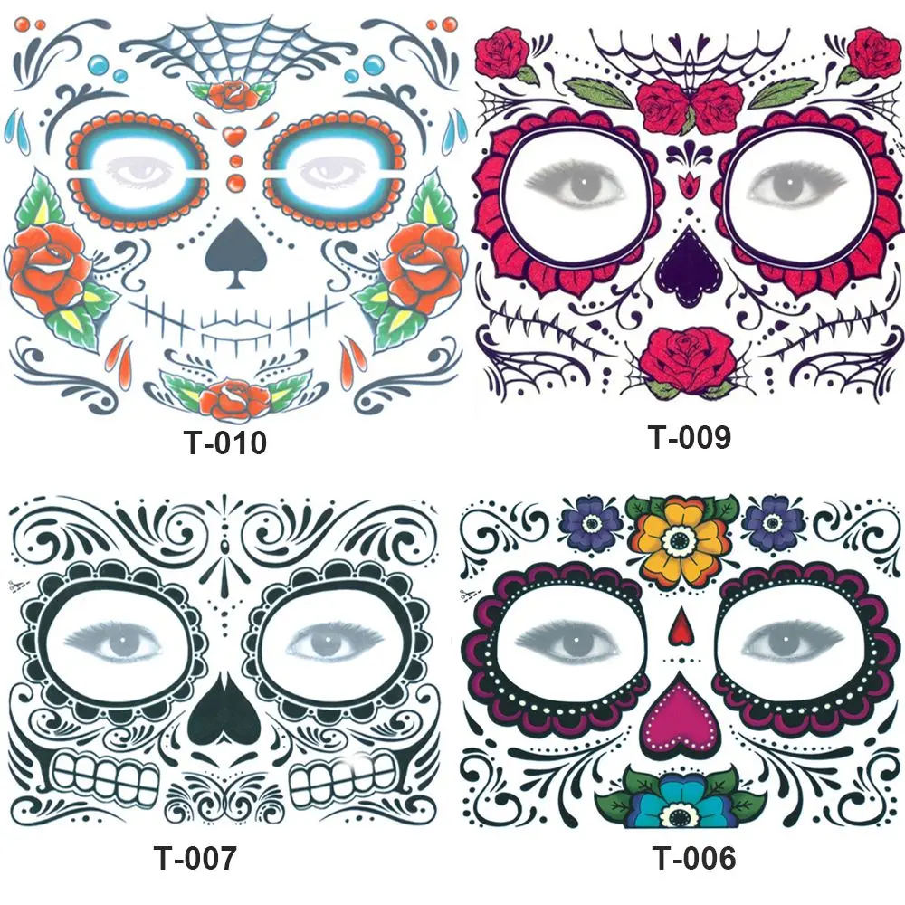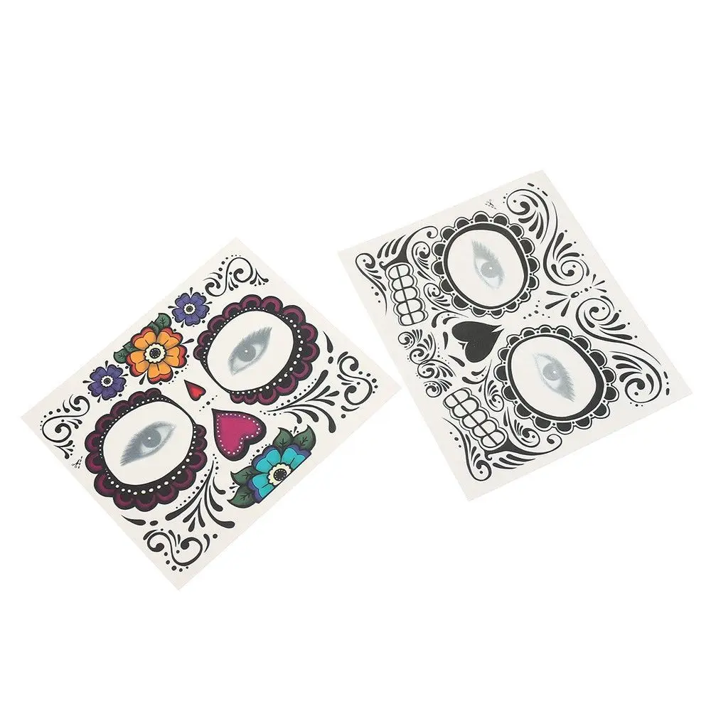 Временные тату-наклейки на лицо День мертвых, Стикеры для нанесения Временной Татуировки, особый водостойкий Макияж для лица на Хэллоуин