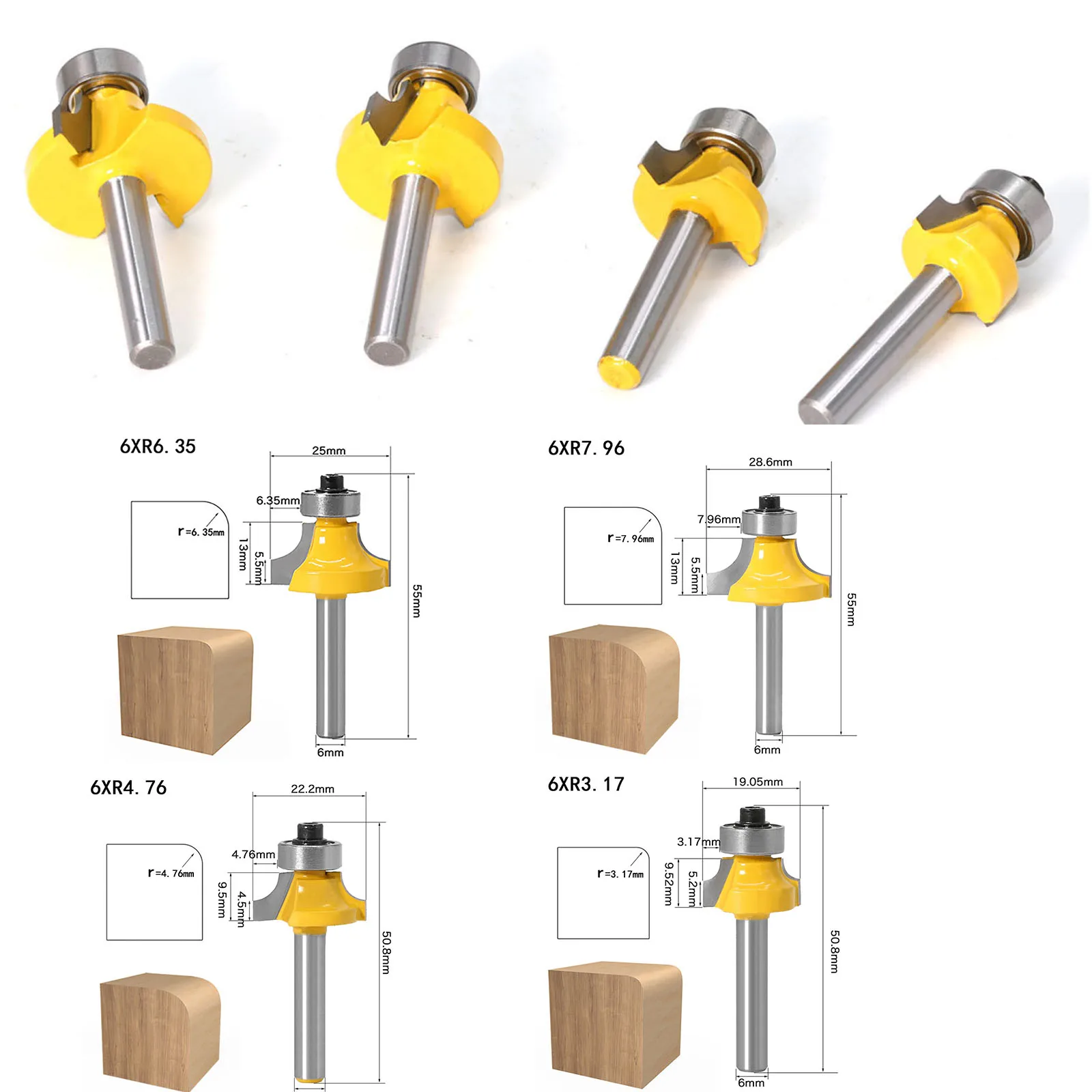 4 шт. 14 хвостовик угловой круглый сверху фреза с подшипником для деревообработки инструмент из карбида вольфрама фреза Прямая поставка
