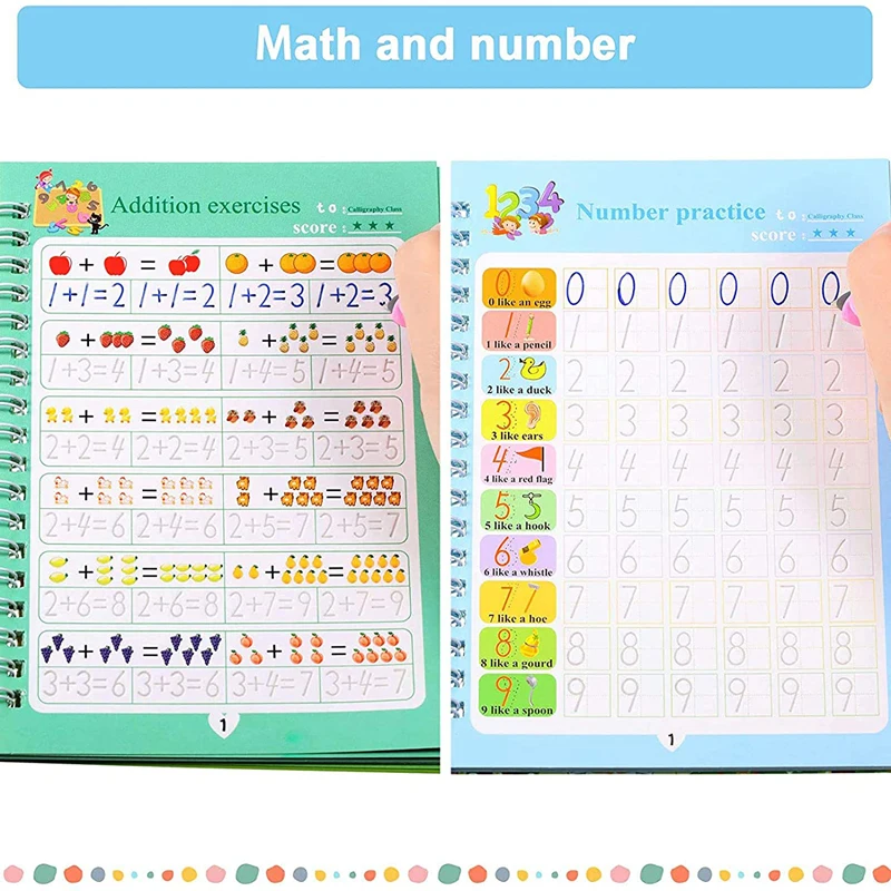 Удобная комбинацияАнглийская Волшебная тетрадь для практики, включая цифровое издание, забавный рисунок, Английский алфавит и арифметическое издание, также предлагается 1 набор автоматических выцветающих ручек, удобный комбинированный набор для васНадежный и удобныйИзготовлен из качественного материал картона, этими магическими письменной форме книги надежны в использовании и очень приятна на ощупь, прочный, чтобы писать; Каждая книга размеры около 5,1x7,5 дюймов/13x19 см, достаточно места для детей, чтобы практиковать написание, пожалуйста, проверьте размер перед покупкойЗабавный, но практичныйБлагодаря трехмерному дизайну паза, эти книги для отслеживания почерка могут стандартизировать стандартный формат письма, весело, но практично для детей, чтобы использовать в повседневной жизни, повышают интерес: эти волшебные книги каллиграфии имеют забавную графическую комбинацию, яркие цвета и милые формы, которые могут повысить память и интерес ребенка, Приносит им много удовольствия, дети могут многому научиться от негоМногократное написаниеБлагодаря этим автоматическим выцветающим ручкам текст в книге может автоматически исчезнуть через 10 минут, что означает, что дети могут много раз применять магическую каллиграфию, а также больше не беспокоиться о ошибках