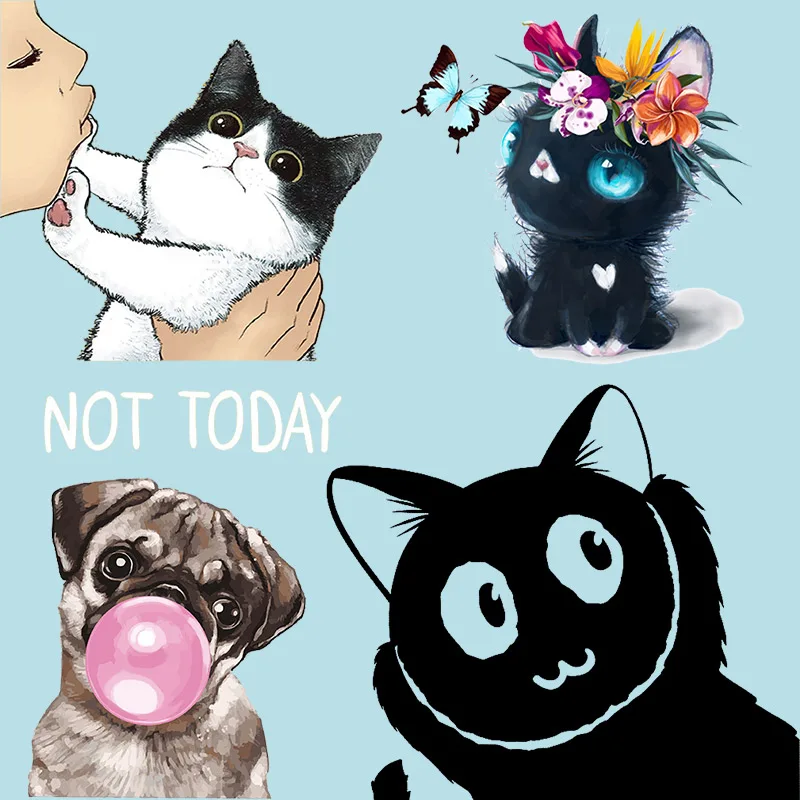 Kawaii термо-наклейки на одежду с котом и собакой, аппликация с мультяшными животными, печатная наклейка с рисунком трамфера для детской футболки