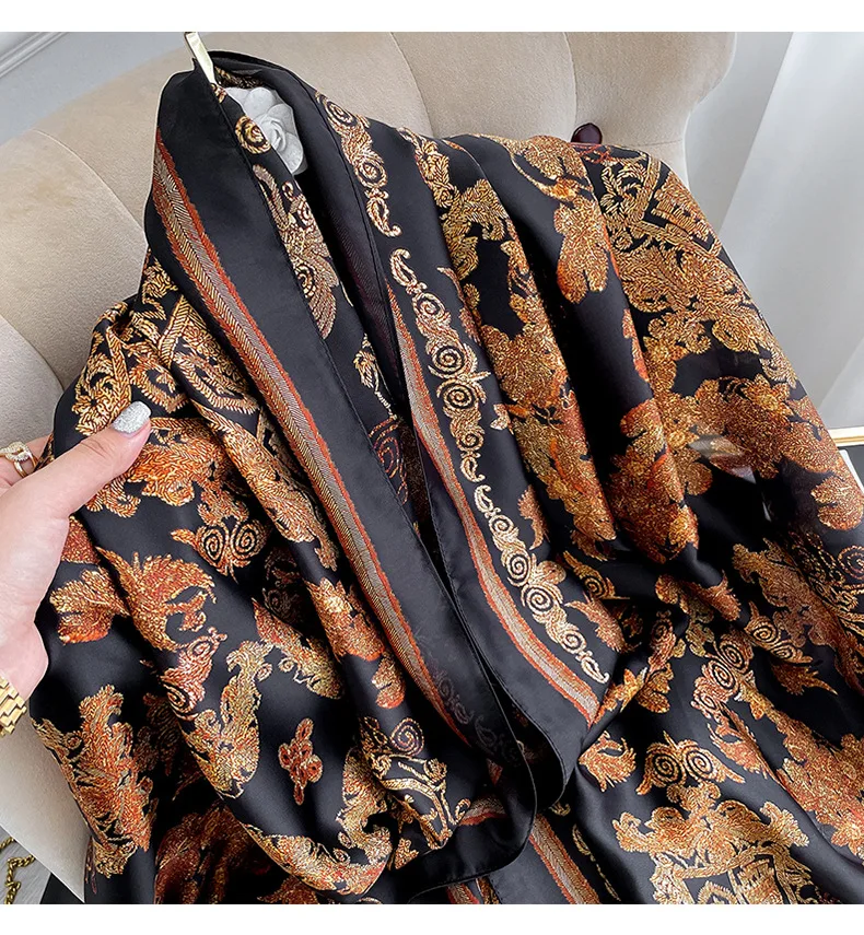 2021 новый роскошный брендовый хлопковый шелковый шарф с принтом, зимний теплый шарф, женская модная Ретро шаль из искусственного шелка средней длины платок
