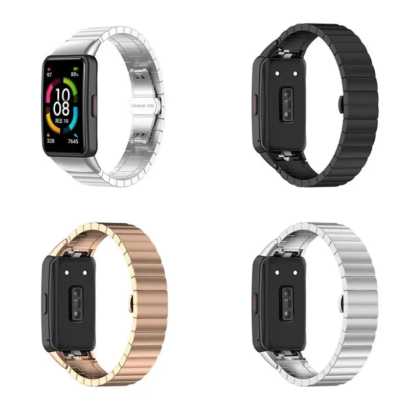 Ремешок из нержавеющей стали для смарт-часов, текстурированный браслет для Huawei Band6 Honor Band 6, сменный металлический браслет