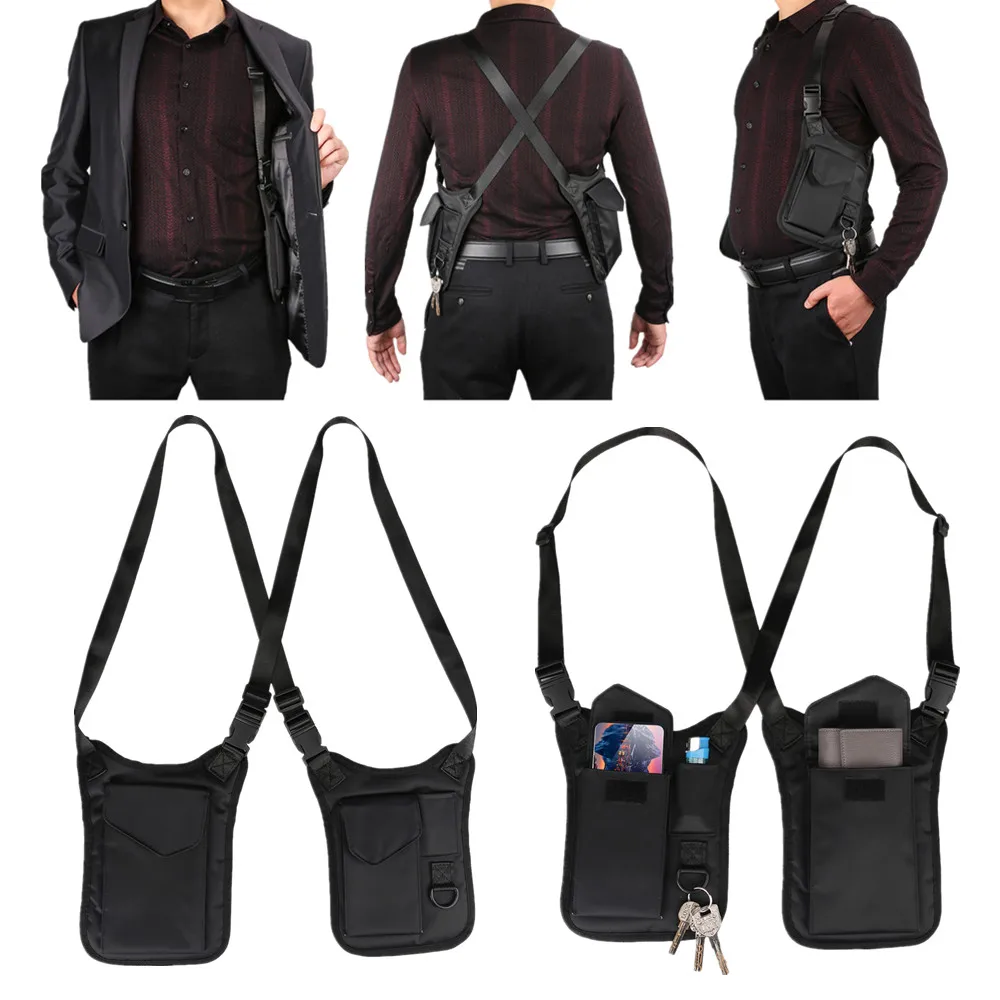 -Защита от кражи-инновационный дизайн Противоугонный, наплечный кобура кошелек, держит ценные вещи скрыты от карманных карманов под вашей курткой. С 2 карманами для хранения ваших вещей, таких как iphone, мобильный телефон, ключи, ручка, паспорт, mp3 и т. Д.