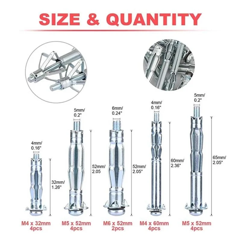 1. Защитные болты с полым расширением: сверхмощный анкерный Фиксатор с полым приводом при установке, обеспечивающий высокую несущую способность и безопасность.2. Различные размеры для большинства стен: вы можете выбрать различные размеры болтов s для удовлетворения ваших различных потребностей. Подходит для широкой толщины пустых стен.3. Сверхмощный подвесной помощник: полые расширительные Болты изготовлены из высококачественной оцинкованной углеродистой стали, устойчивы к ржавчине и коррозии, достаточно прочные, чтобы повесить предметы, такие как карнизы, лампы, фоторамки, вешалки и многое другое.4. Широкий спектр применения: Идеально подходит для крепления полостей анкерного гипсокартона, широко используется в гипсокартоне, полых блоках, гипсе, плитке, идеально подходит для подвешивания карнизов, ламп, фоторамок, вешалки, выключатели питания. Удобно для повседневной жизни.5. Если у вас есть какие-либо вопросы, пожалуйста, свяжитесь с нами. Мы сделаем все возможное, чтобы вам помочь.