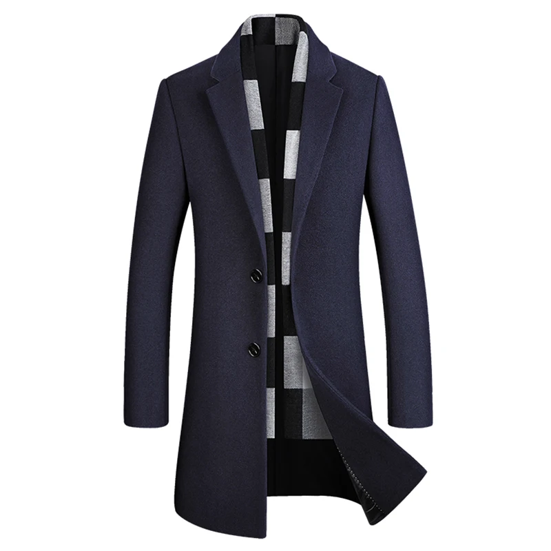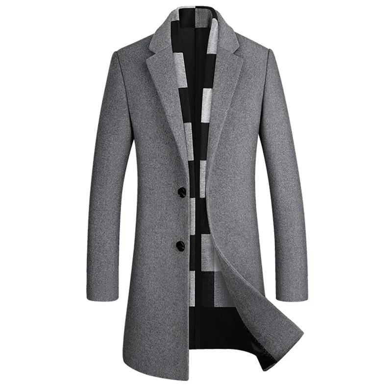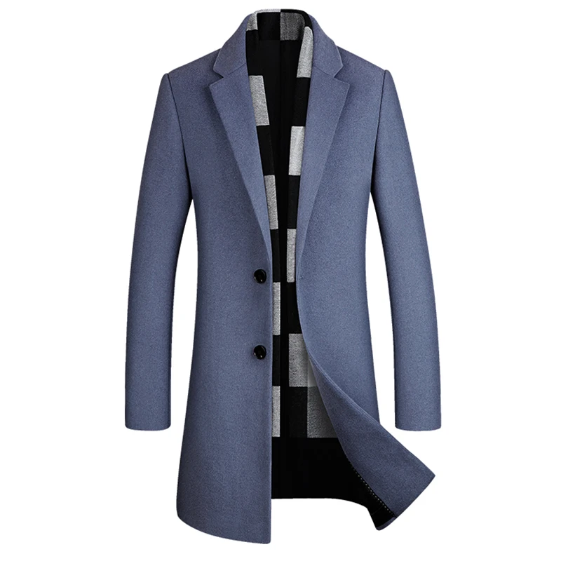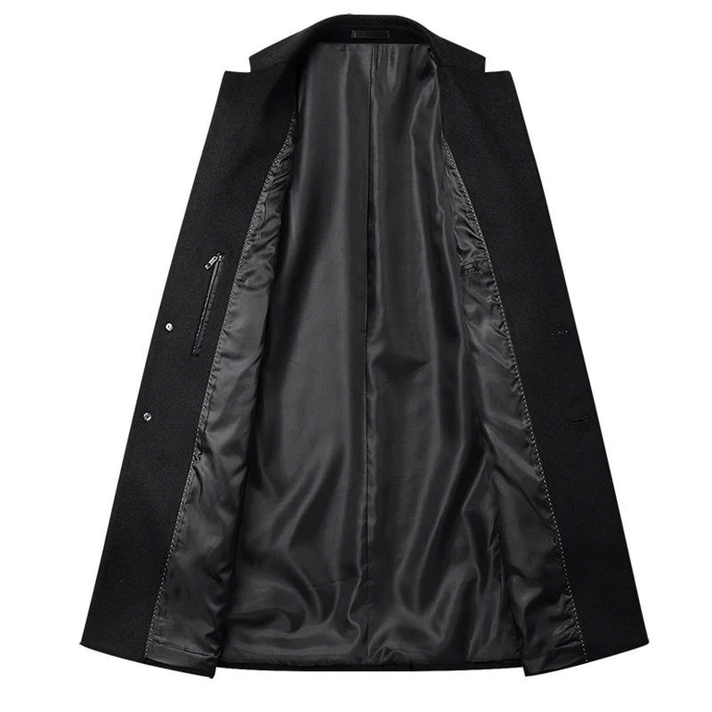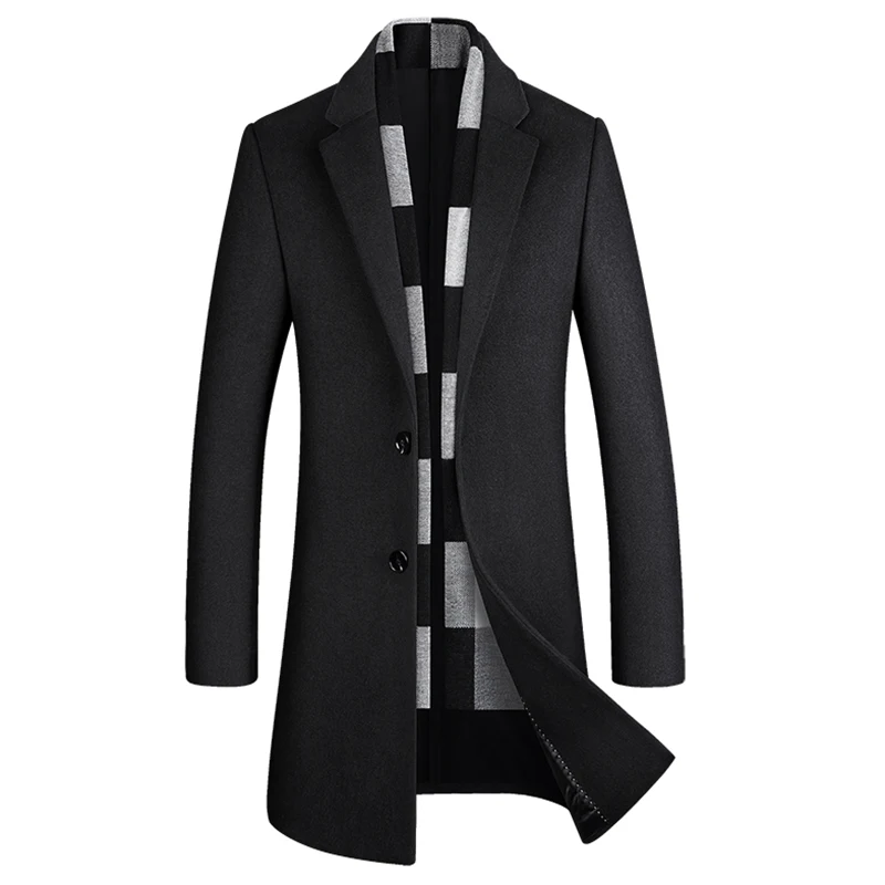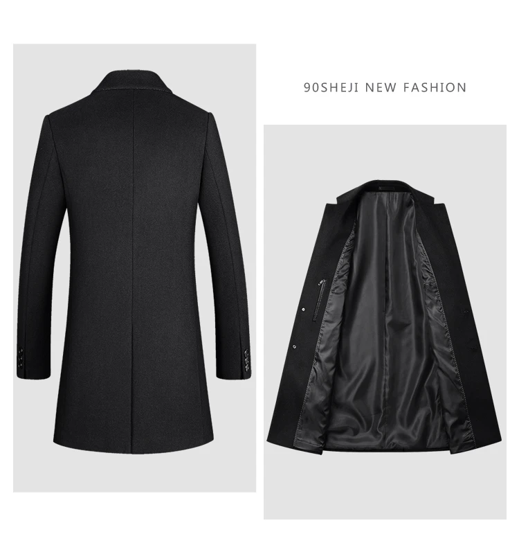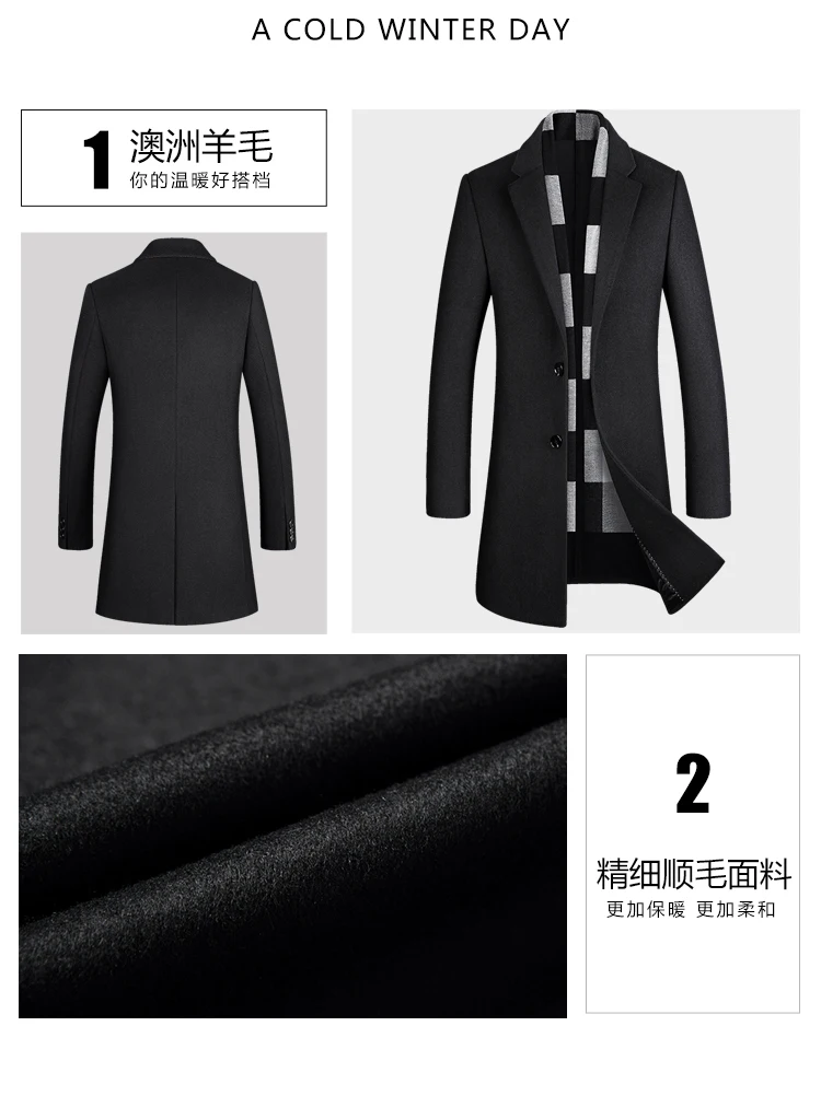 Осень-зима 2021, шерстяное пальто, мужской деловой Тренч средней длины, однотонное теплое шерстяное пальто из бутика