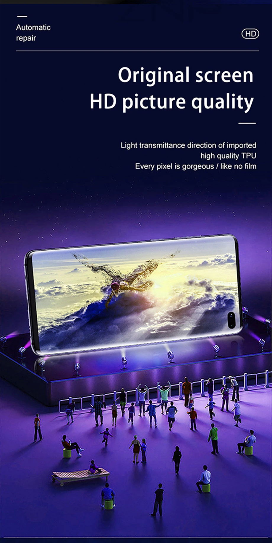 Полная прозрачность, полное покрытие, без границы/без покрытия экрана, очарование изогнутого экрана