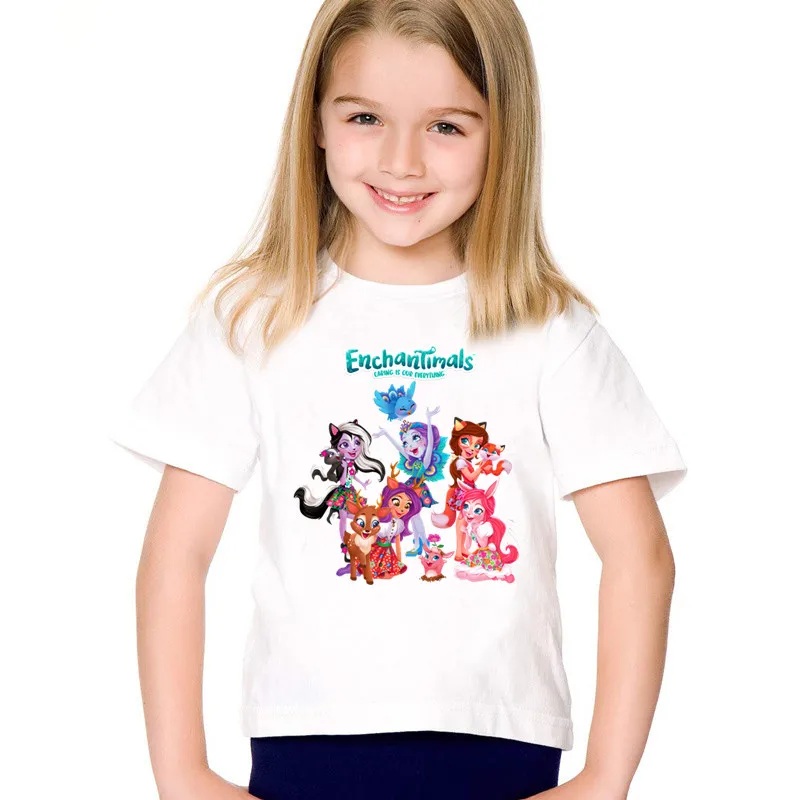 Летняя Детская футболка с принтом Enchantimals, футболка для девочек, милая детская одежда с коротким рукавом и мультяшным Кроликом, детские топы, HKP5454