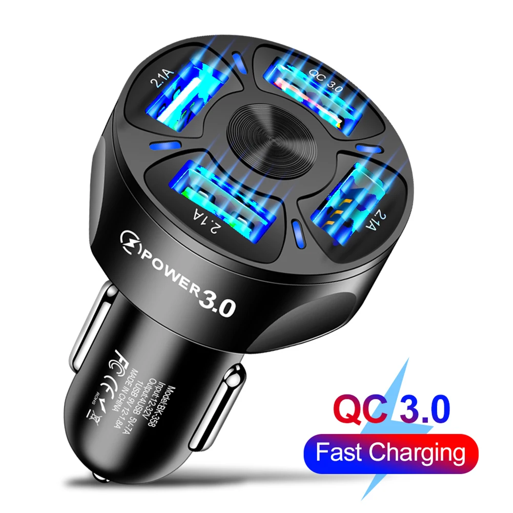 4 порта USB Автомобильное зарядное устройство Быстрая зарядка QC 3,0 Быстрая Зарядка адаптер для iOS Android смартфон мобильный телефон планшет
