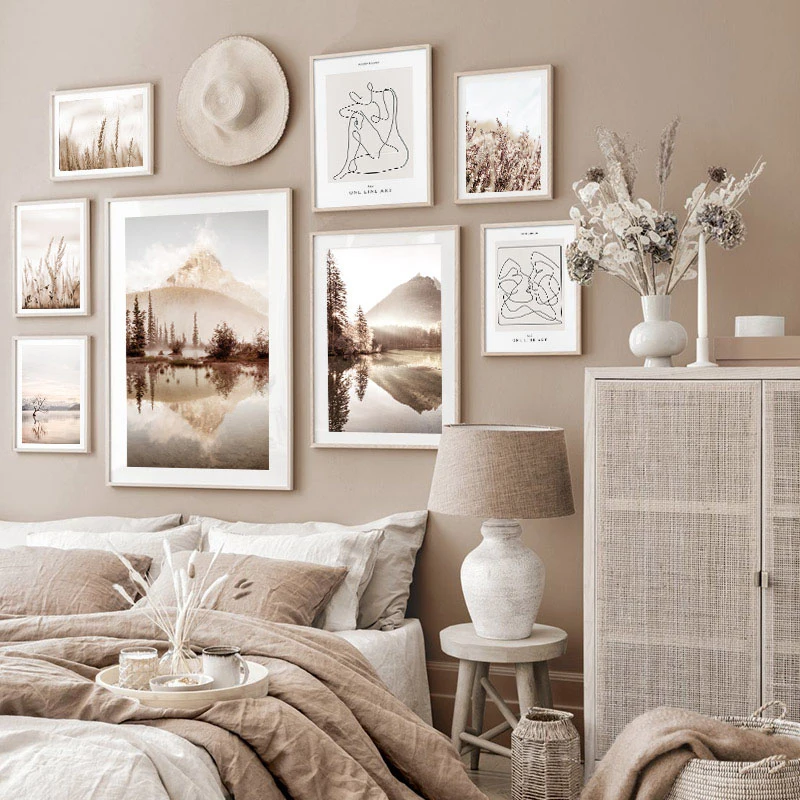 Настенная живопись, холст, бежевый тростник, сушеные цветы, плакаты...