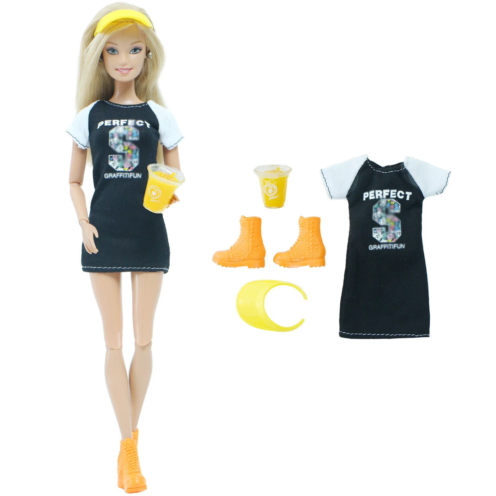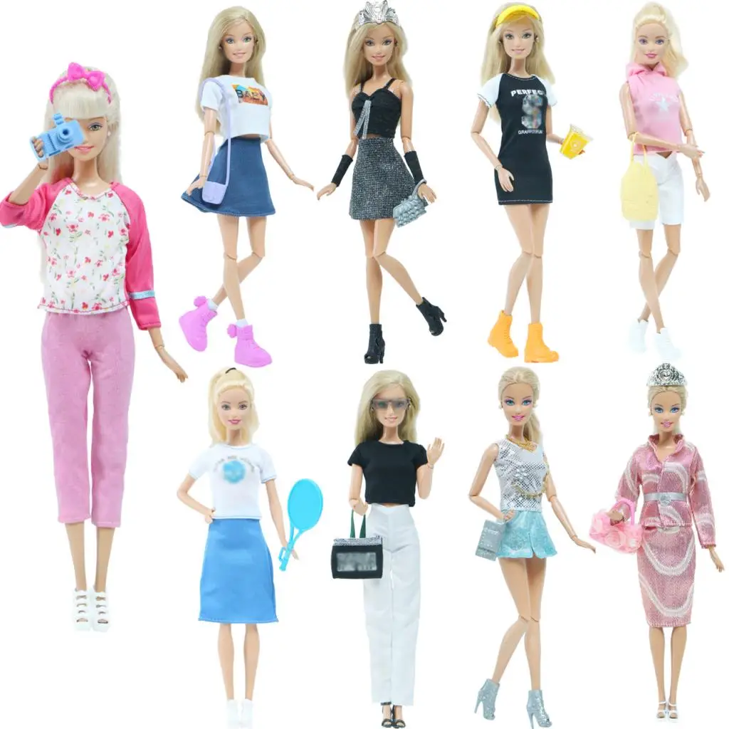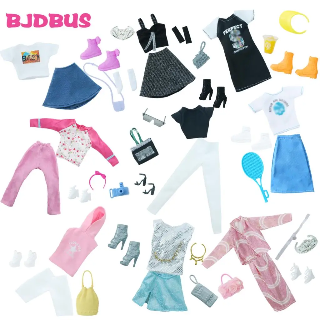 Комплект одежды для куклы Барби, Одежда для куклы, платье, футболка, штаны, юбка, ботинки, обувь, шляпа, сумки, аксессуары