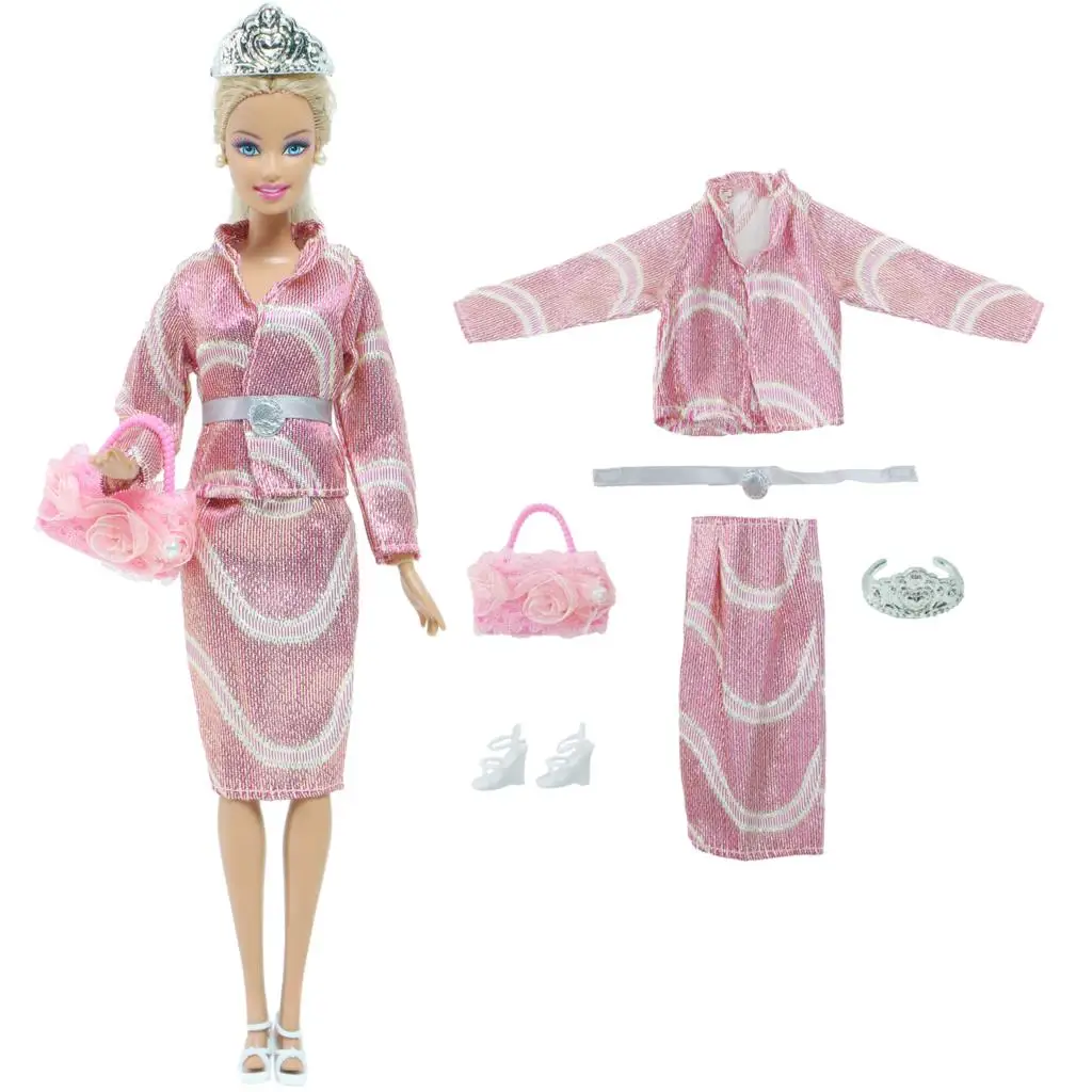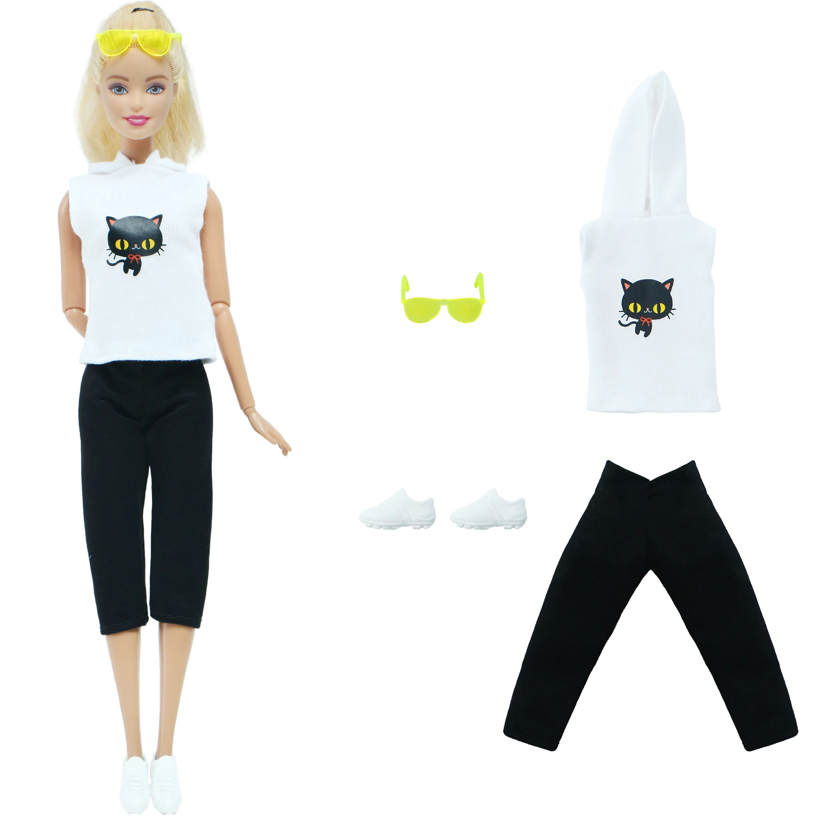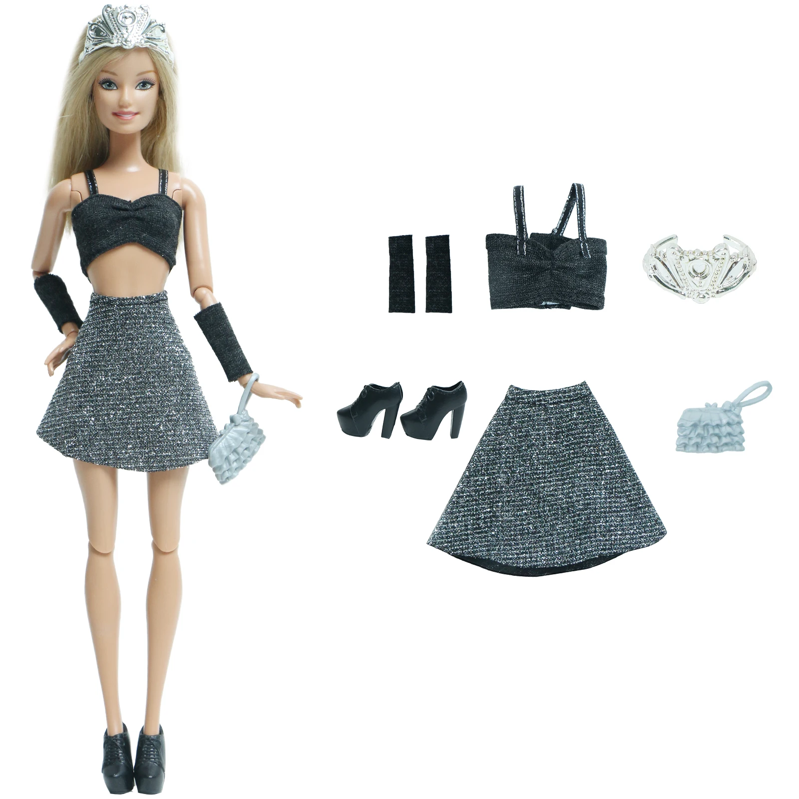 Комплект одежды для куклы Барби, Одежда для куклы, платье, футболка, штаны, юбка, ботинки, обувь, шляпа, сумки, аксессуары