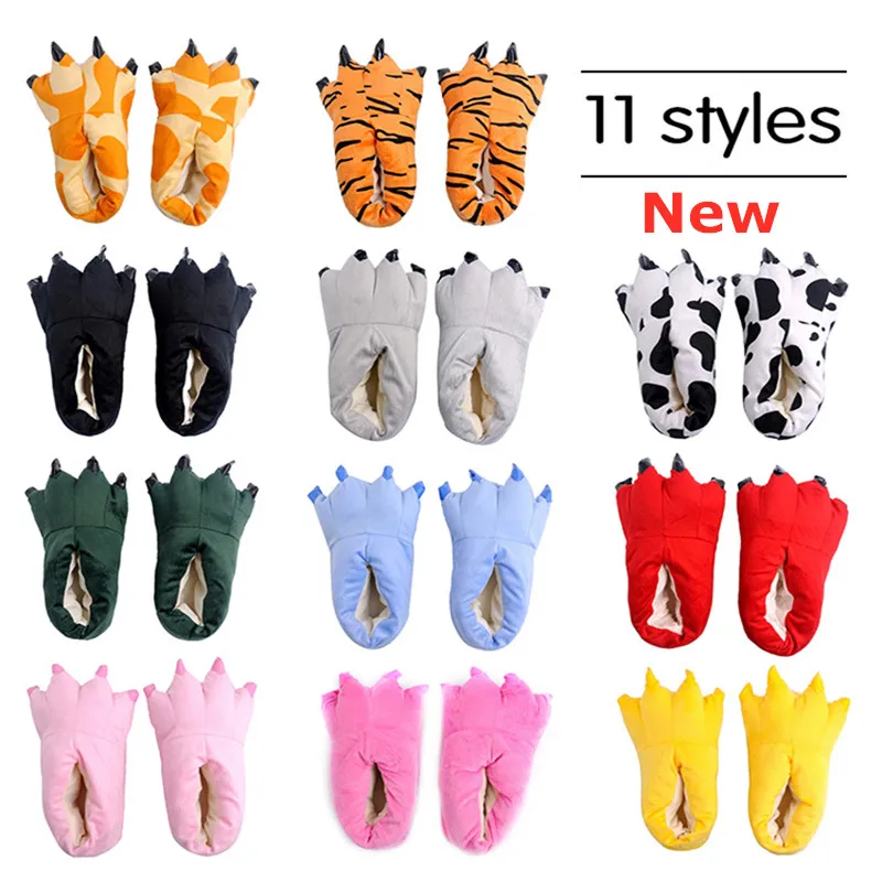 Тапочки с животными из мультфильмов для зимы, плюшевые тапочки с когтями динозавра, подарок на Хэллоуин, теплые Мультяшные тапочки, Рождественский подарок