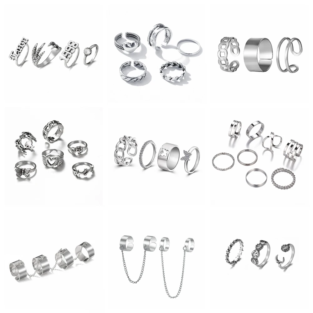 Модный набор колец с цепью и бабочкой для женщин и мужчин, женский набор, обручальные открытые кольца дружбы 2021, ювелирные изделия