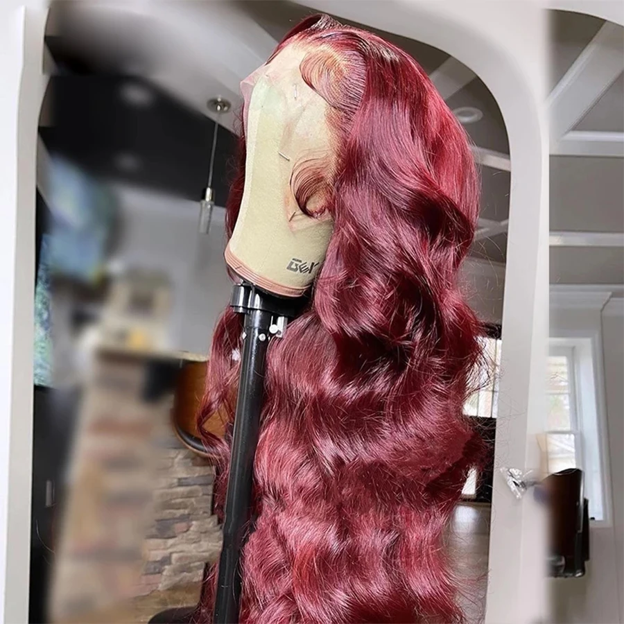 Парики из человеческих волос с цветными бордовыми кружевами спереди, волнистые красные передние парики на сетке для женщин, прозрачные парики на сетке 13*6, перуанские Реми