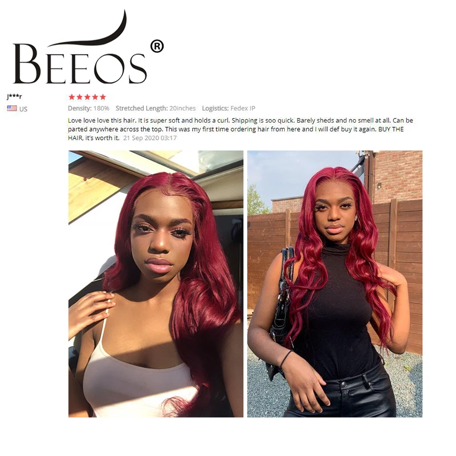 Beeos 13*6 волнистые бордовые 99J цветные кружевные передние человеческие волосы парики 180% для женщин предварительно выщипанные бразильские волосы Remy