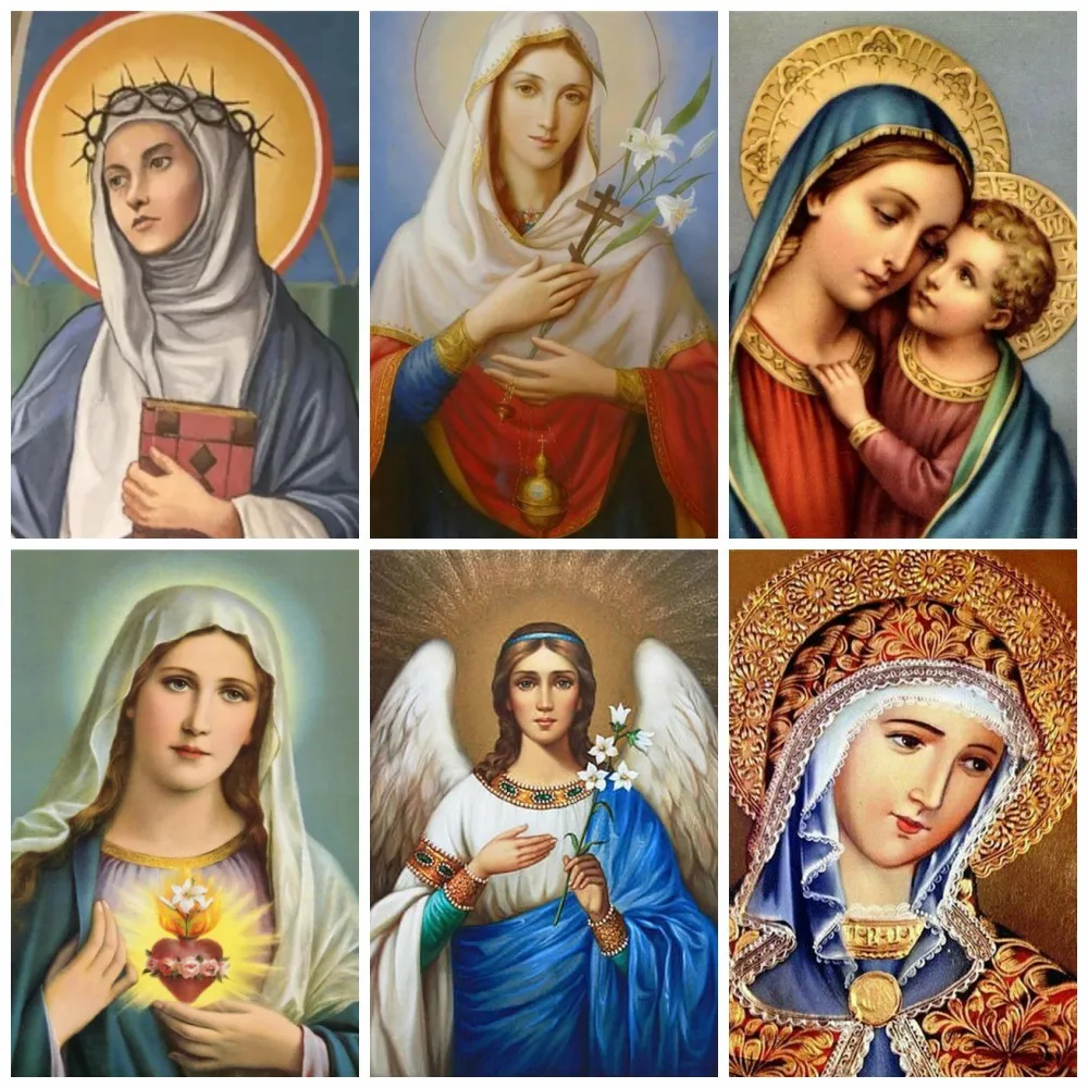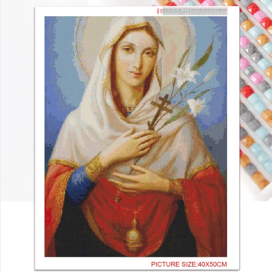 Размер холста Алмазная мозаика Virgin Mary Cross Вышивка Комплект 5D полная Алмазная картина религия модульные фотографии украшение дома