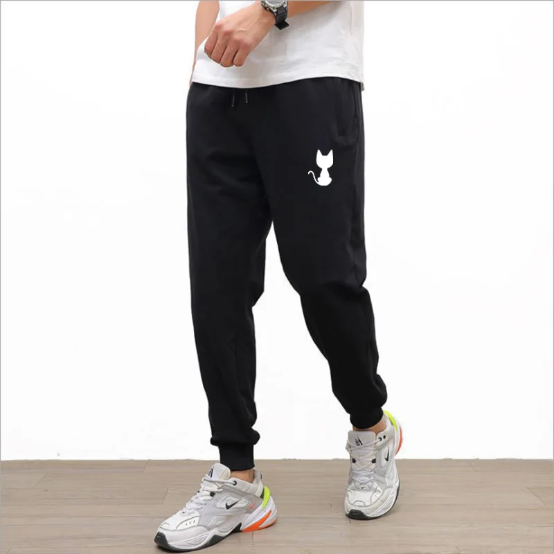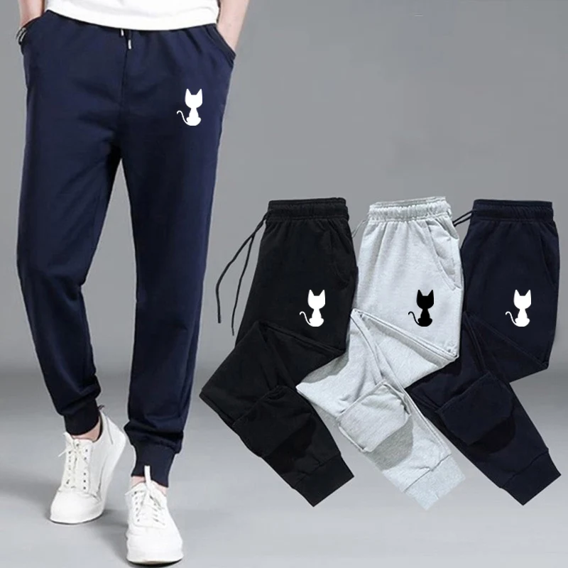 Мужские спортивные брюки с принтом кошки, спортивные дышащие повседневные свободные брюки большого размера для бега, мужские брюки для бега