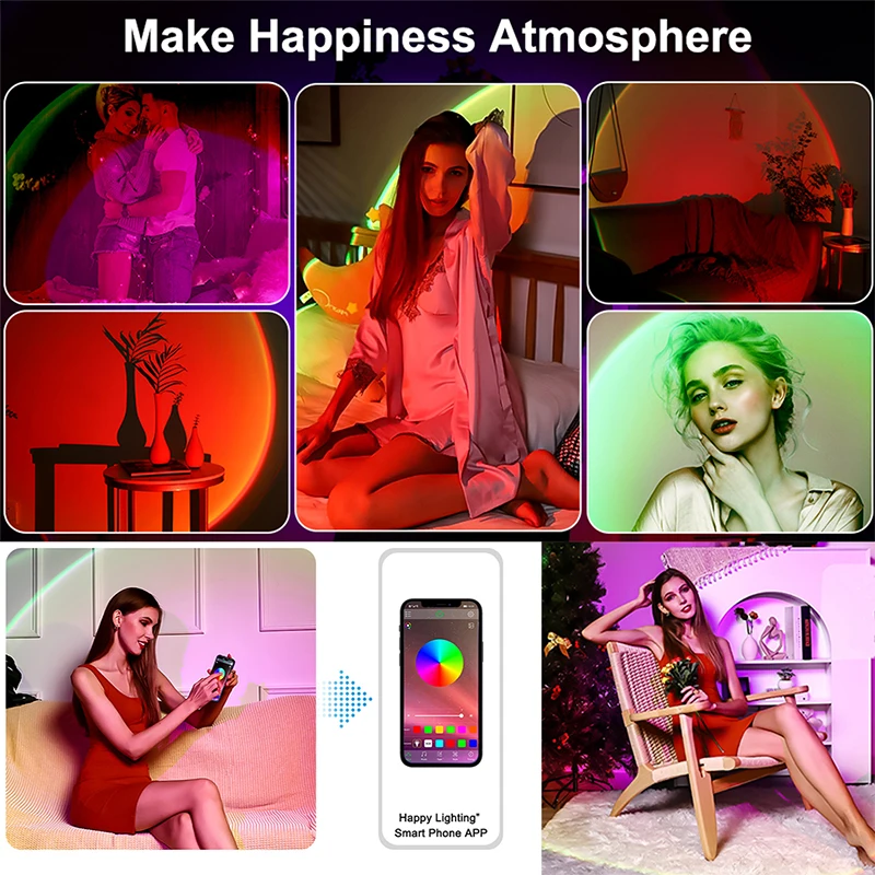 Умное приложение, проектор заката 64 миллиона цветов, лампа для гостиной, бара, спальни, украшения дома, медитации