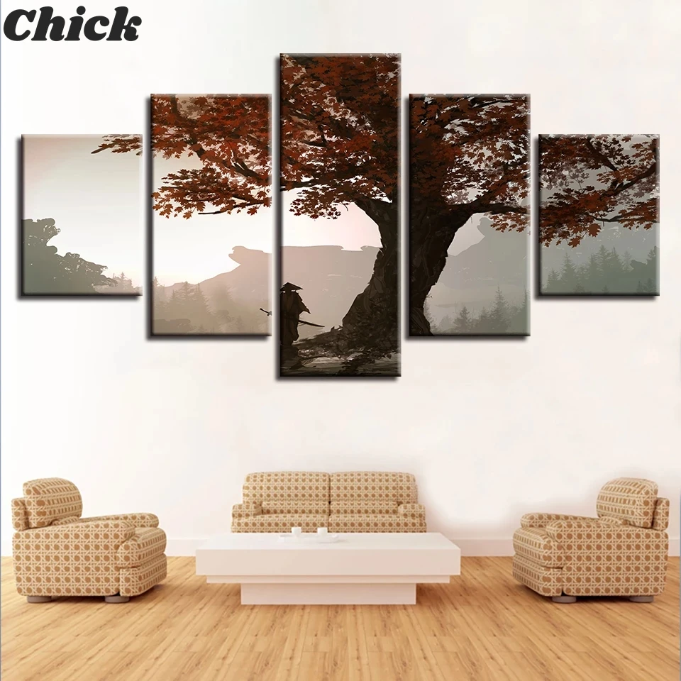 Модульные картины на холсте HD, Декор для дома, 5 шт., аниме картины самурая, настенное искусство, постер с кленовым деревом, рама для гостиной