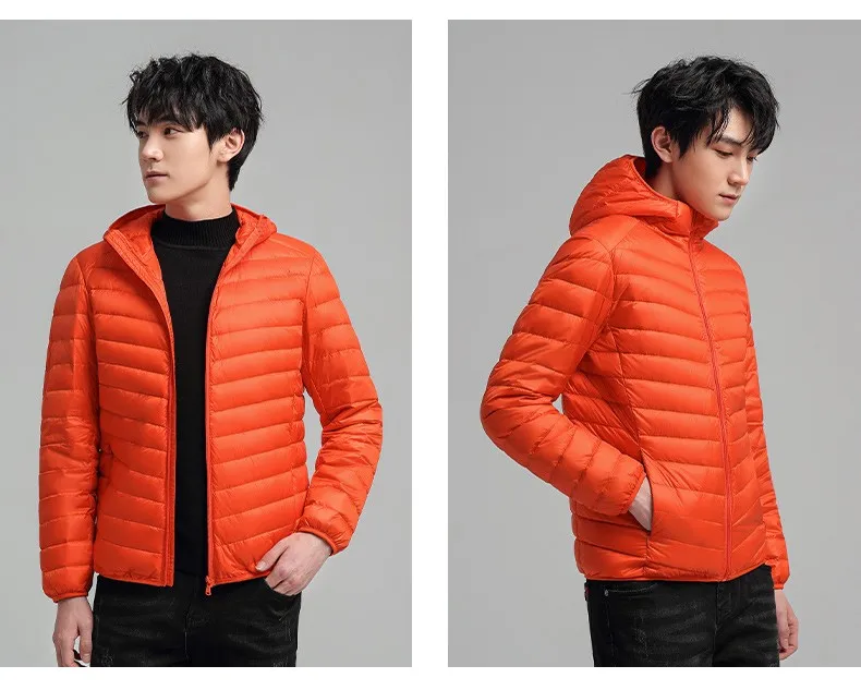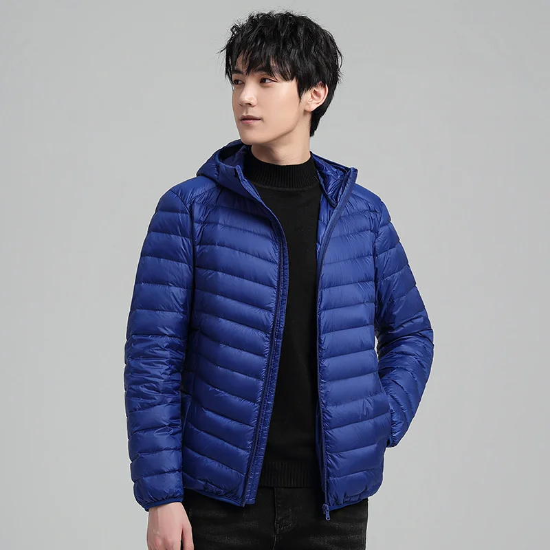 Пуховик мужской, светильник, на утином пуху, с капюшоном, Осень-зима, 2021