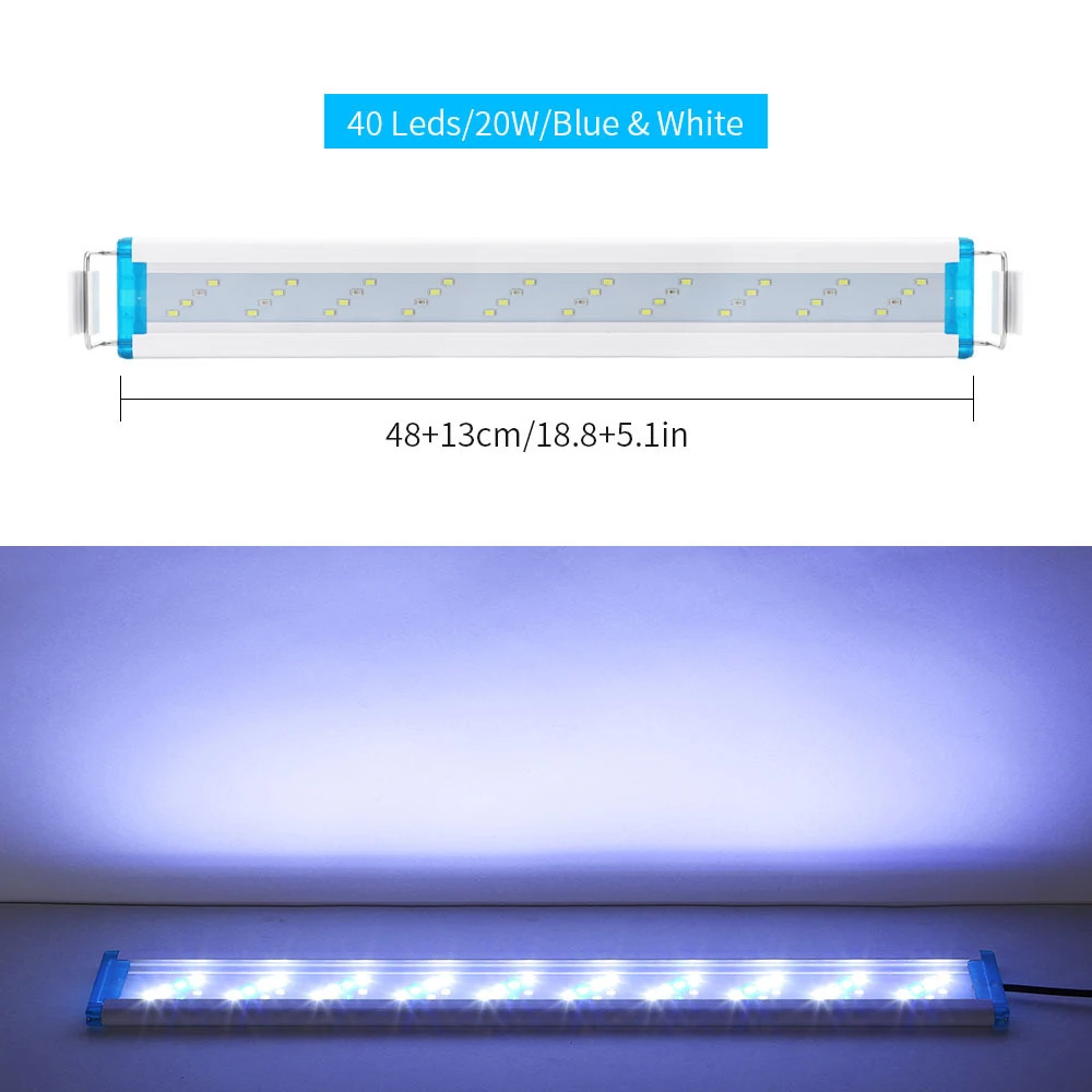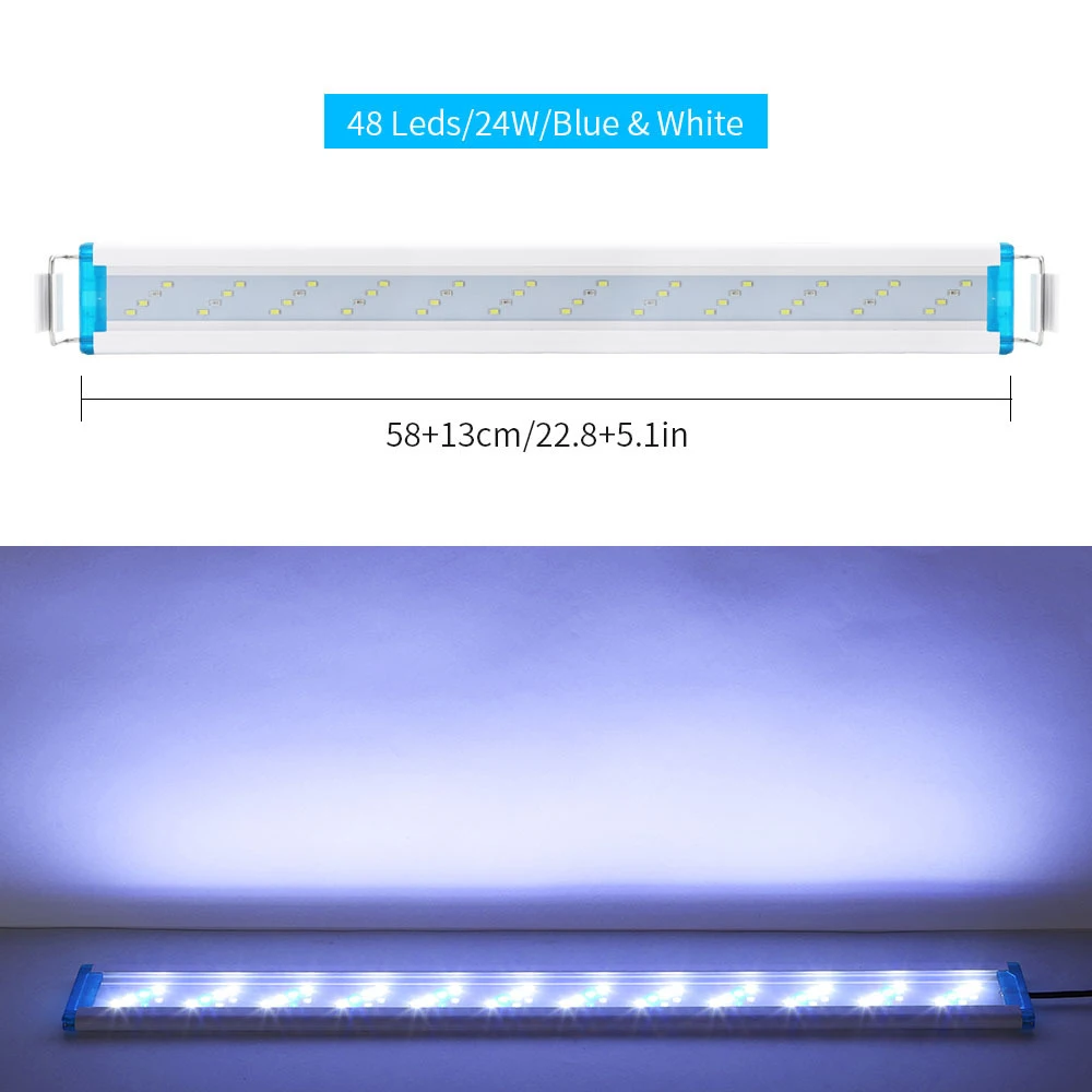 Аквариумный светильник 1848 см, синий, белый, расширяемый, из нержа...