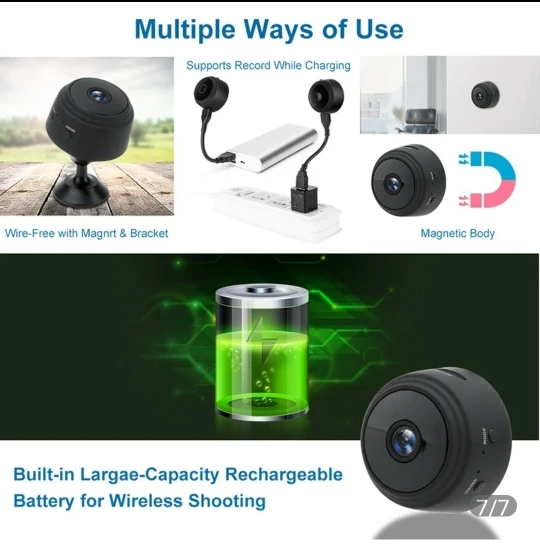 Легко разместить в любом месте. Эта небольшая камера с жестким зарядным кабелем и
