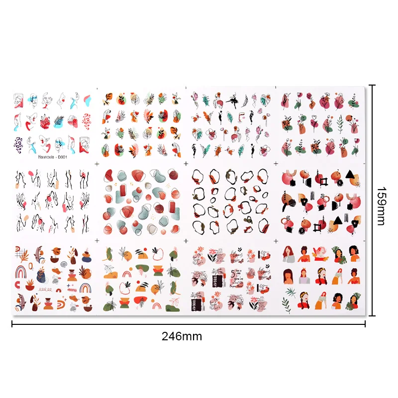 1 большой лист (12 шт) переводные наклейки для ногтей с водой девушка/листья/цветок Переводные картинки для