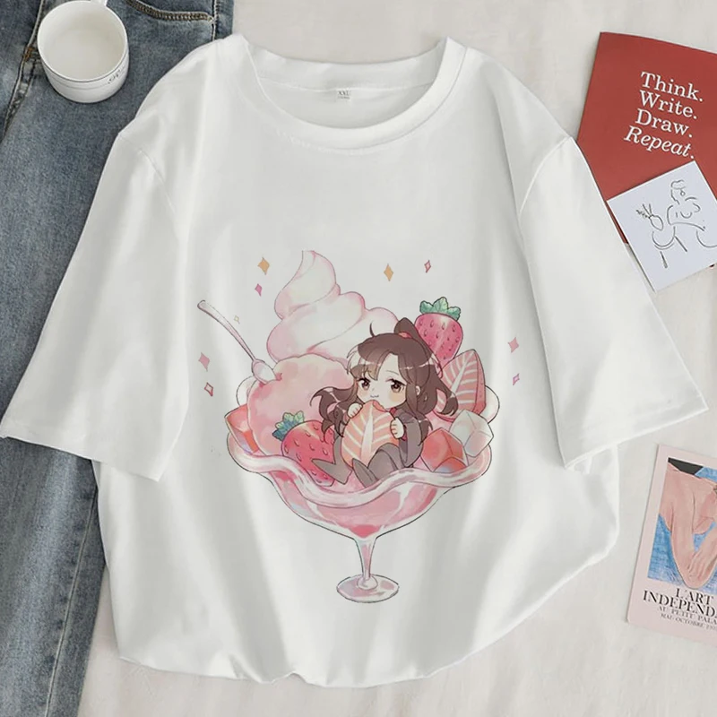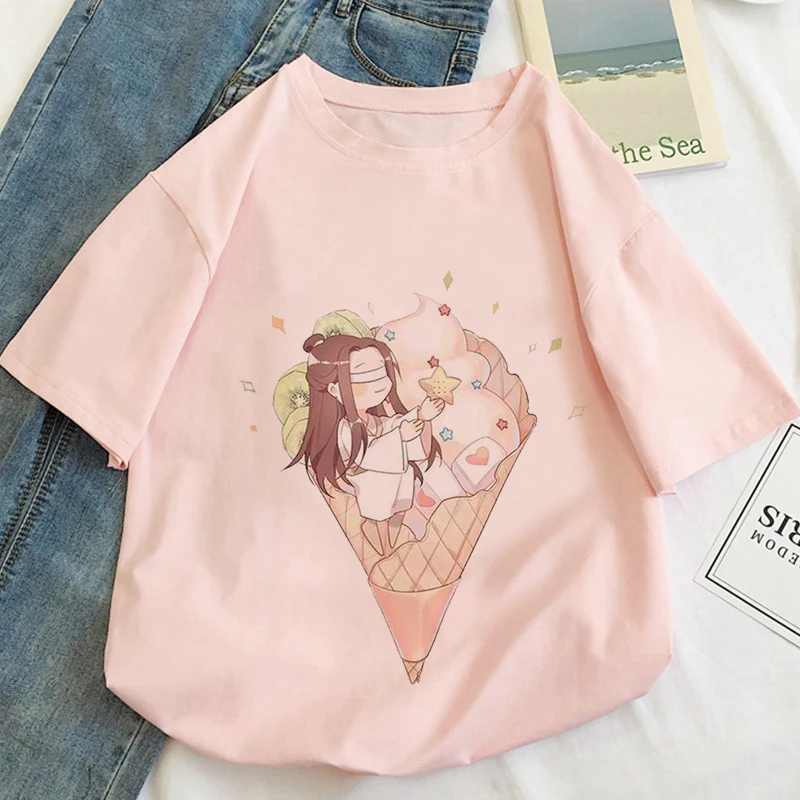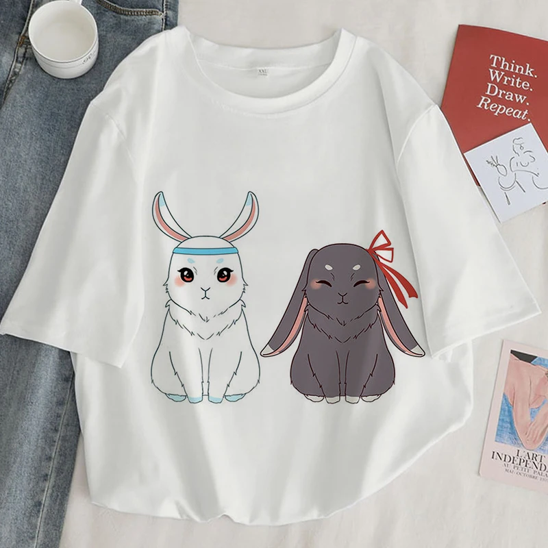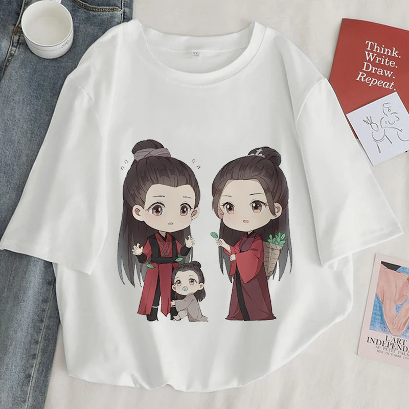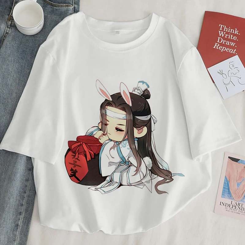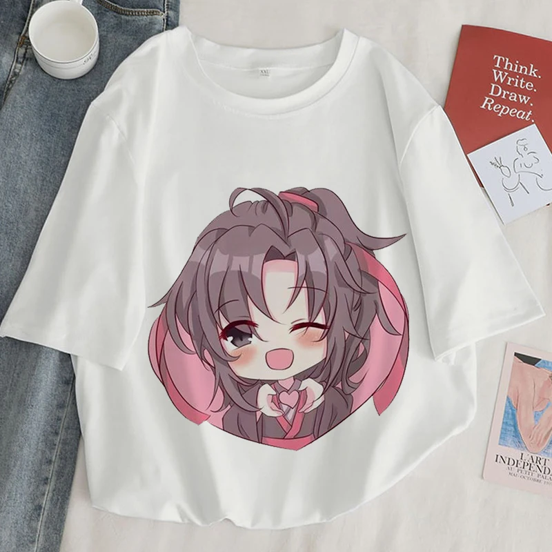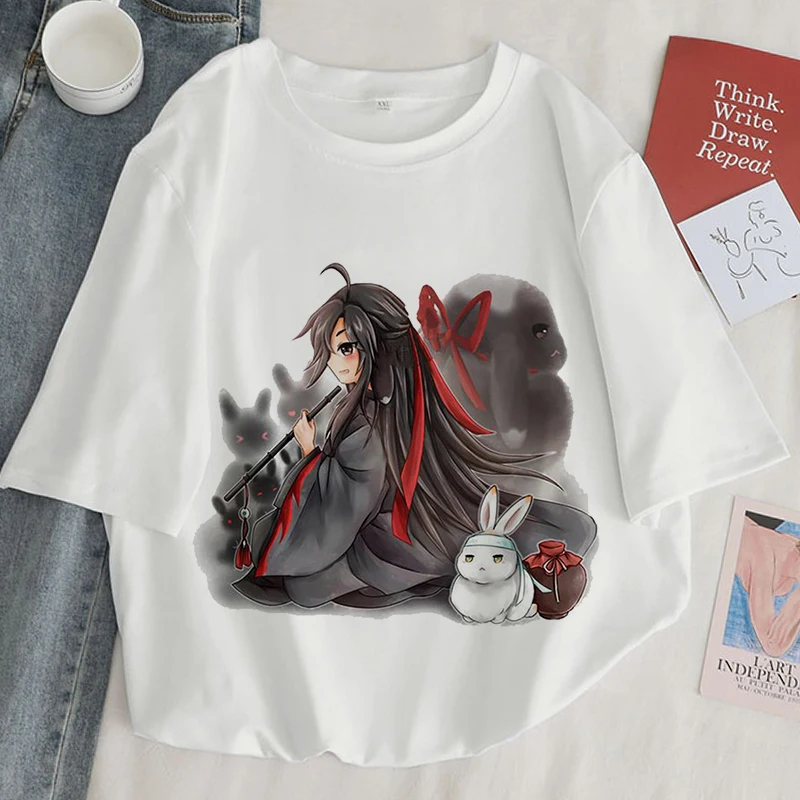 Летняя женская футболка с графическим принтом Mo Dao Zu Shi, Женская Повседневная Базовая белая рубашка с круглым вырезом, женская футболка с коротким рукавом, Прямая поставка