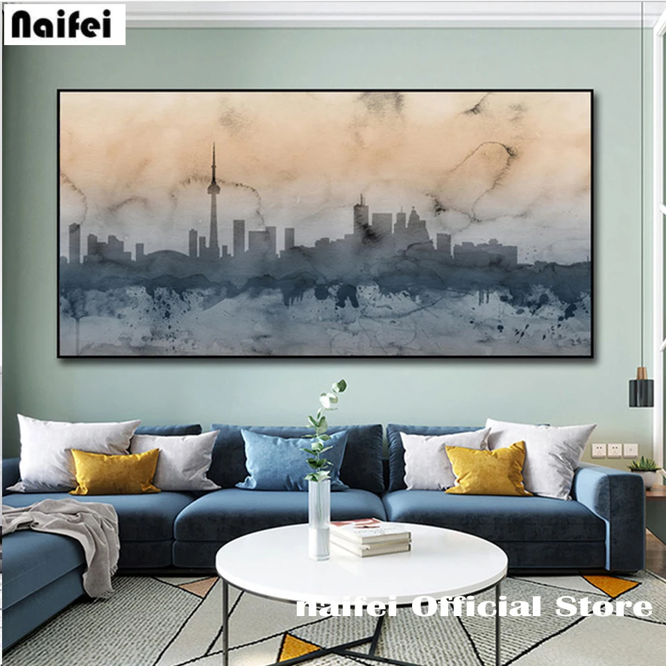 Алмазная 5d живопись сделай сам, Набор для вышивки крестиком в современном абстрактном городском стиле, с полным квадратным и круглым узором, домашний декор
