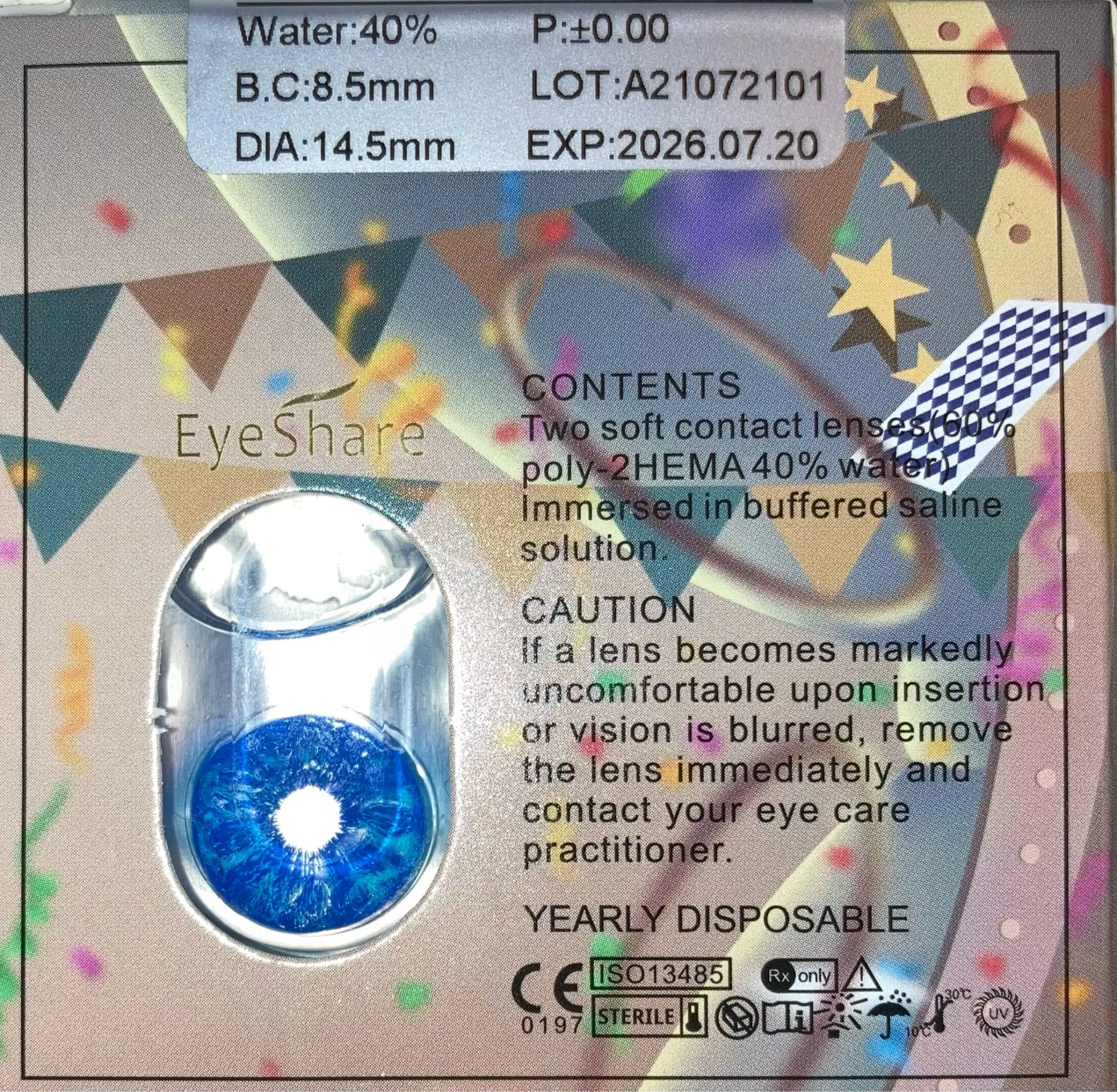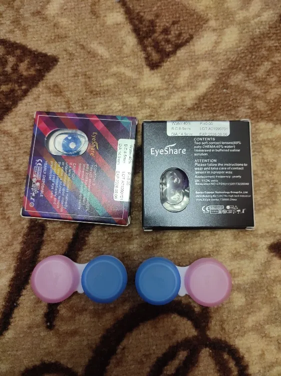 Линзы красивые, увеличивают глазки и отлично перекрывают свой цвет глаз, пришли достаточно быстро. Можно носить как с одной, так и с другой стороны, то есть, будет либо синий, либо голубой цвет((: НО в них не очень хорошо видна картинка по бокам, они ощущаются на глазах (те в свою очередь краснеют) А так, очень даже хорошие, выглядят красивенько