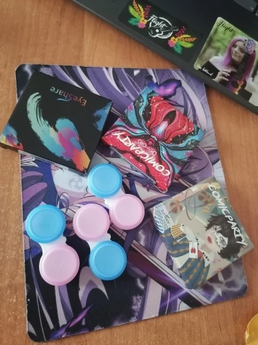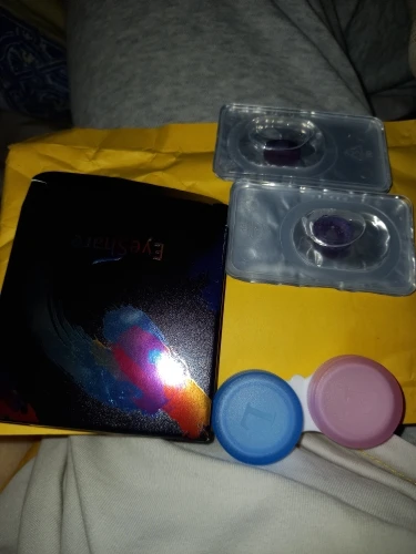 Линзы просто прелестные, милейшие и просто великолепные. Упаковка очень красивая, и в комплекте есть контейнер для линз.) Но у них есть один большой недостаток - они перекрывают край зрачка, из-за чего, видна каёмка лилового цвета, когда смотришь вверх, или в бок. Это оказалось немного дискомфортно, но со временем привыкаешь.