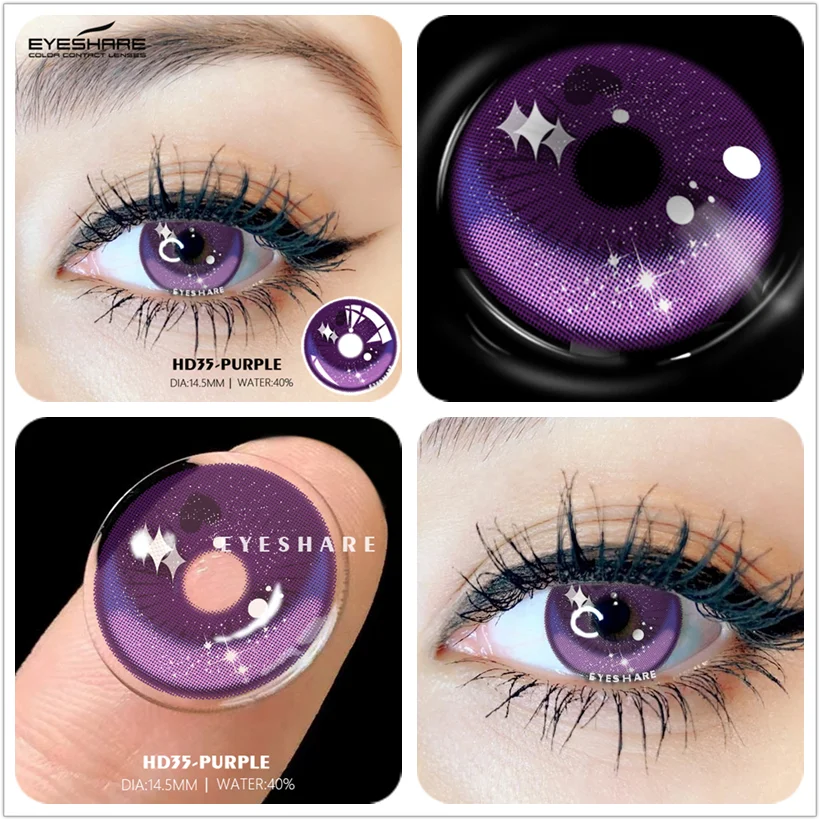 Цветные контактные линзы EYESHARE для глаз 2 шт. Аниме Косплей цветные линзы ed синие фиолетовые линзы для Хэллоуина контактные линзы Красота Макияж