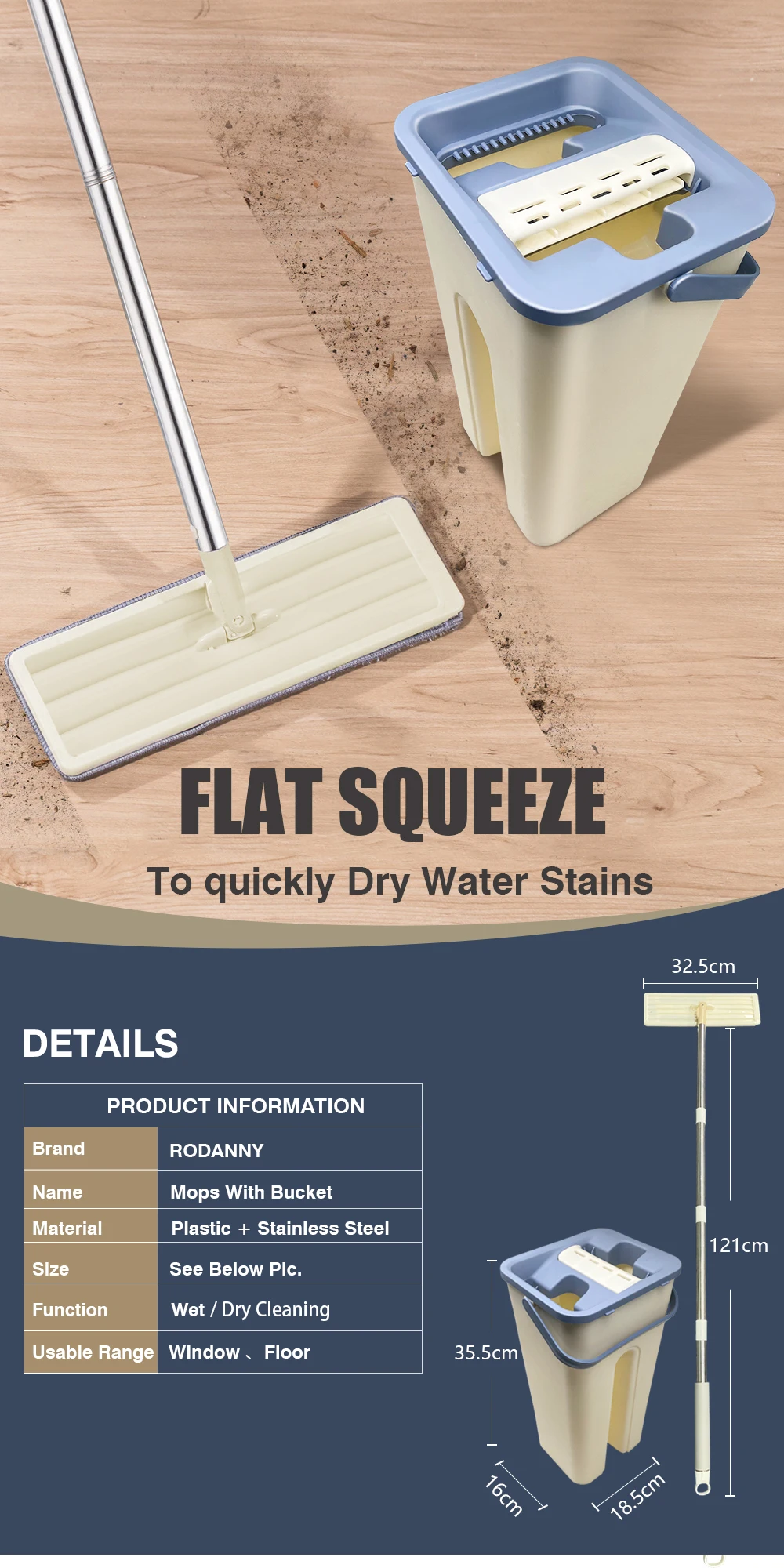 Roдэнни, волшебная плоская швабра с ведром для чистки, швабра с свободными ручками, швабра с автоматическим отжимом
