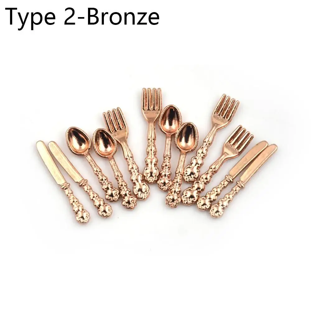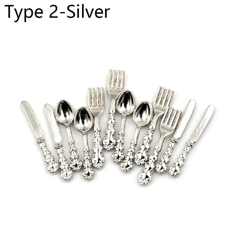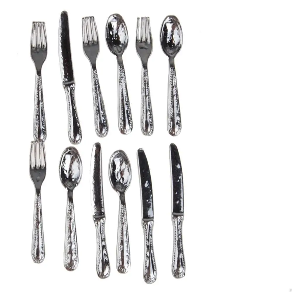 12 шт. имитация мини кукольного домика мебель 1:12 Масштаб Вилка Нож Ложка миниатюрная набор столовых приборов столовые приборы кукольные аксессуары