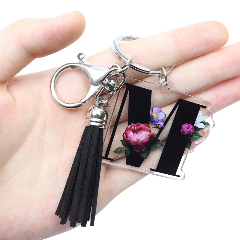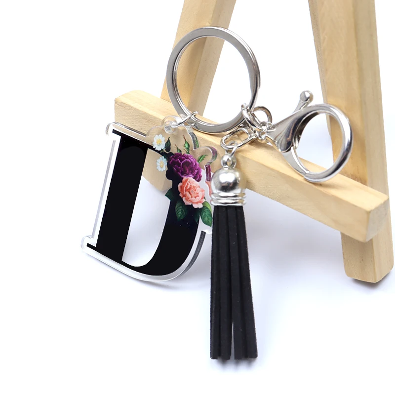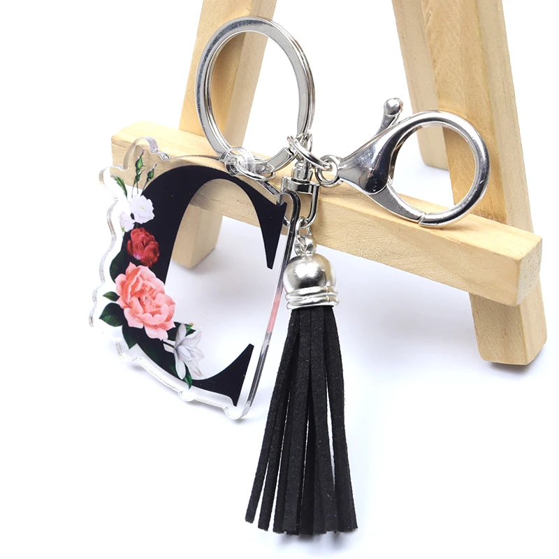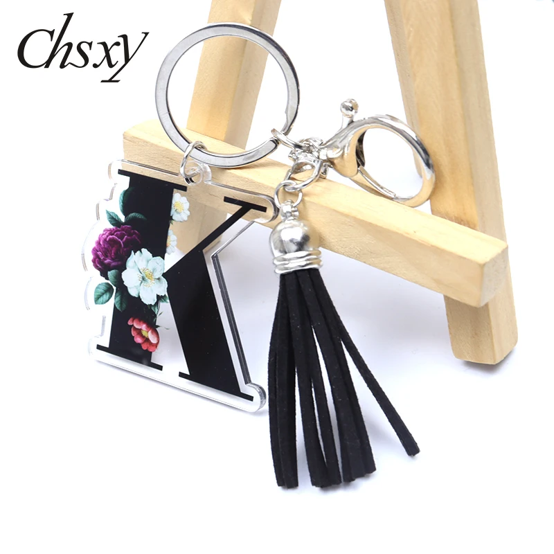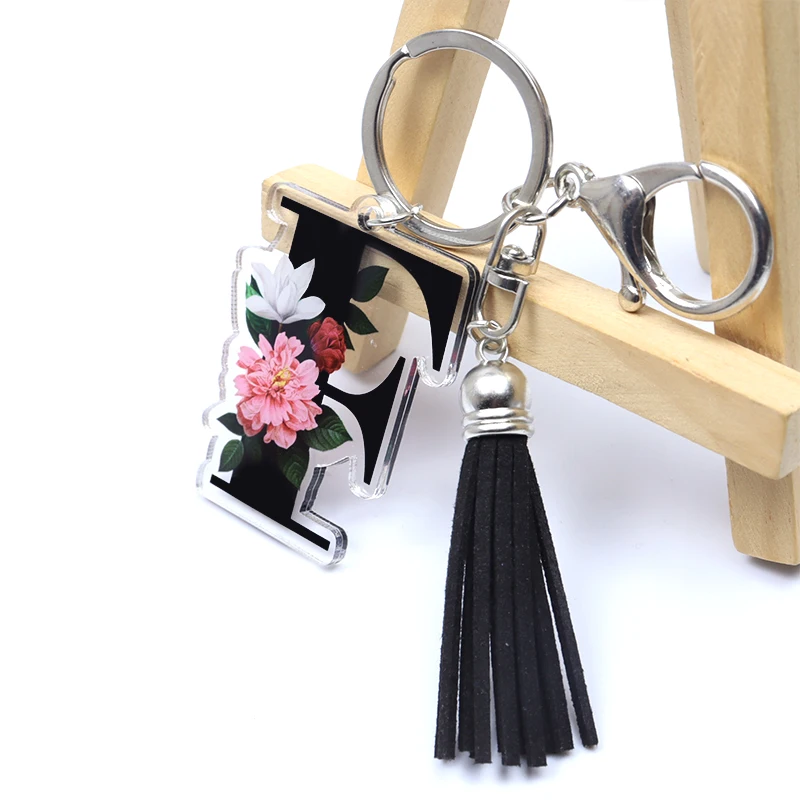 Акриловые брелоки с кисточкой, 26 дюймов, оригинальная буква, Брелоки для ключей с алфавитом, двусторонние брелоки для сумок, модные украшения, подарки