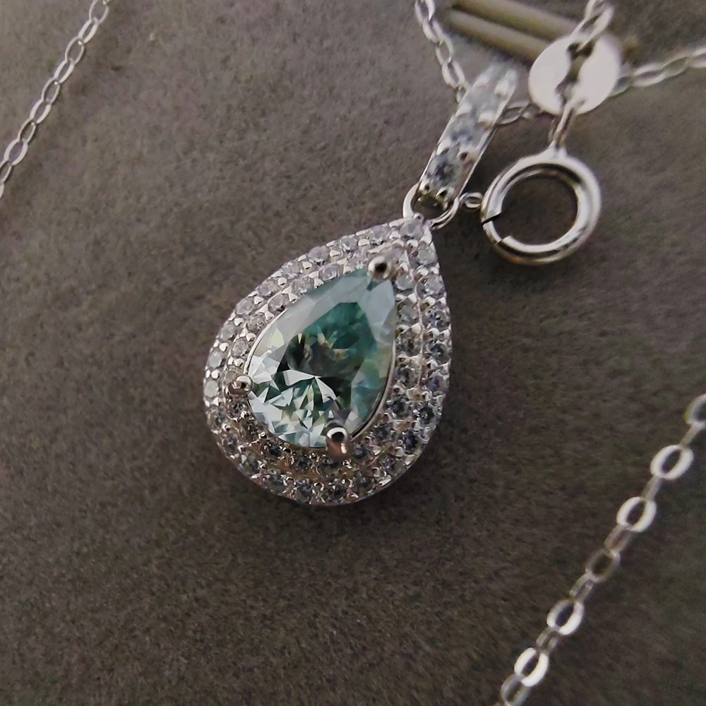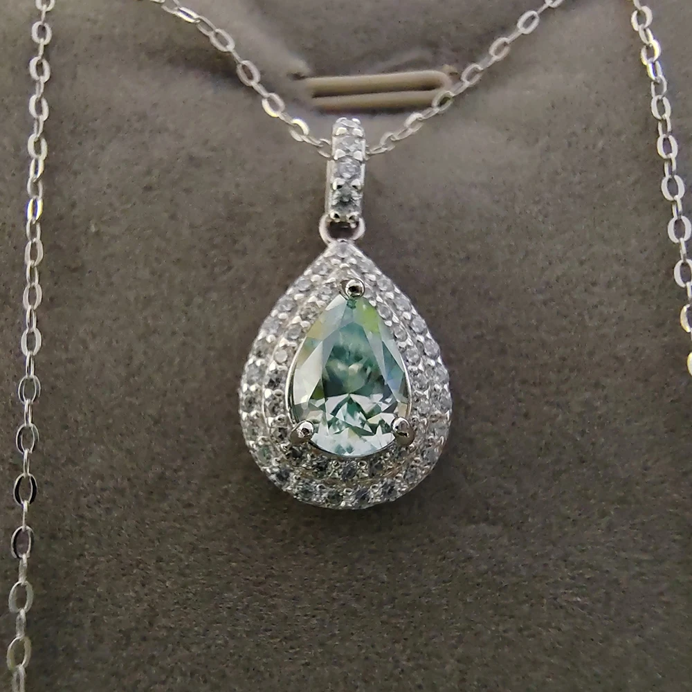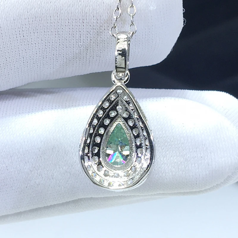 S925 Стерлинговое Серебро 1CT 5*8 мм Зеленая капля воды Moissanite ожерелье для свадебной вечеринки женские ювелирные украшения