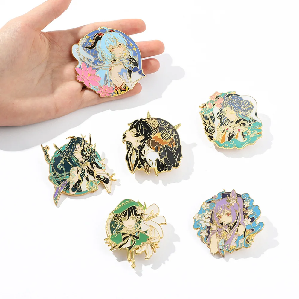 Аниме Genshin Impact Wendi тартаглия булавки брошь Ganyu Keqing Xia...